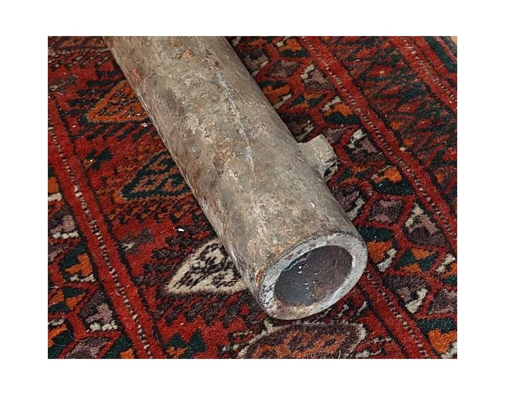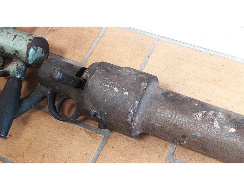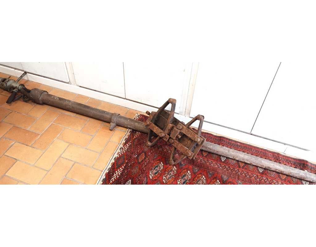 Rare canon Canardier darne modèle 1896 calibre .40 pour la chasse sur étangs, peinture bleu clair d'époque. Culasse pivotante, affut à ressorts.