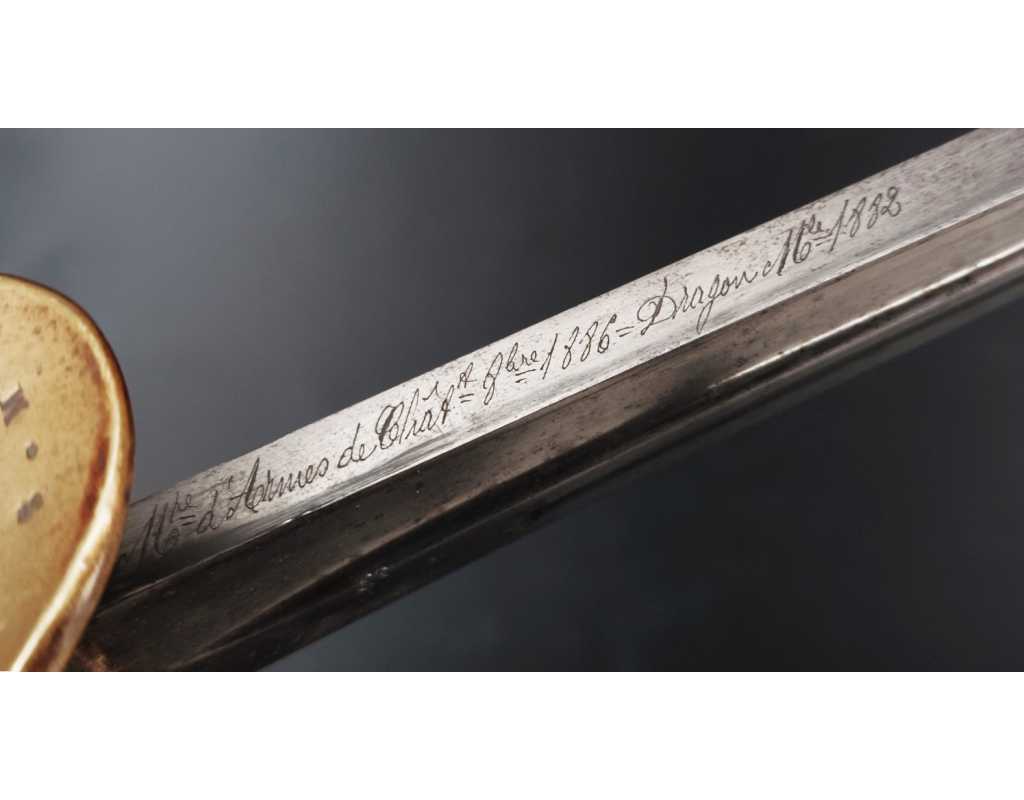 SABRE DE CAVALERIE SYSTÈME DE 1882 LAME DROITE DRAGON 2è TAILLE 92.5CM CHÂTELLERAULT 1886 - FRANCE IIIÈ RÉPUBLIQUE