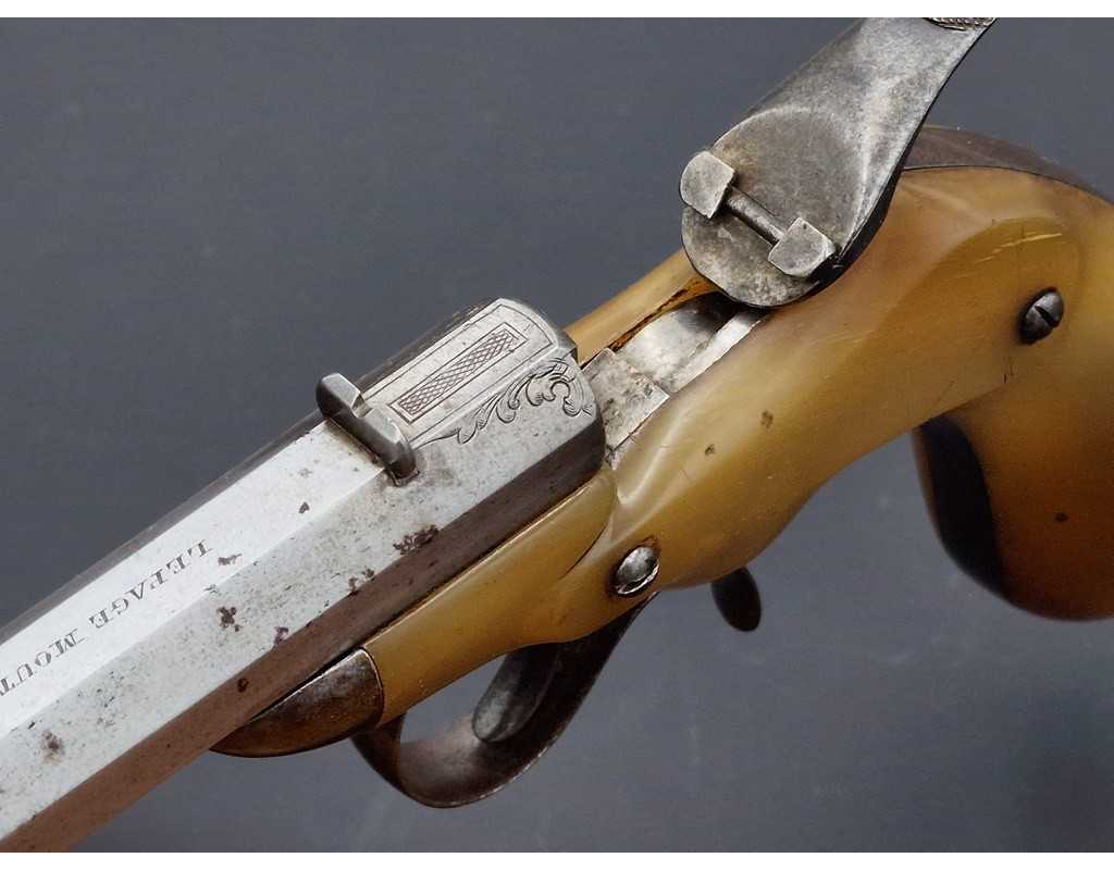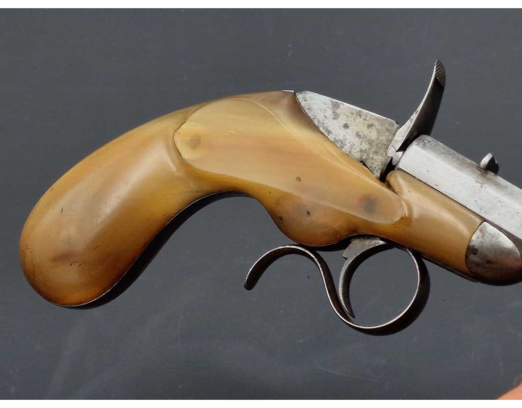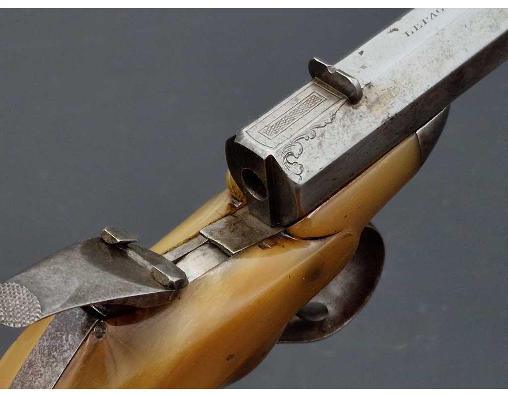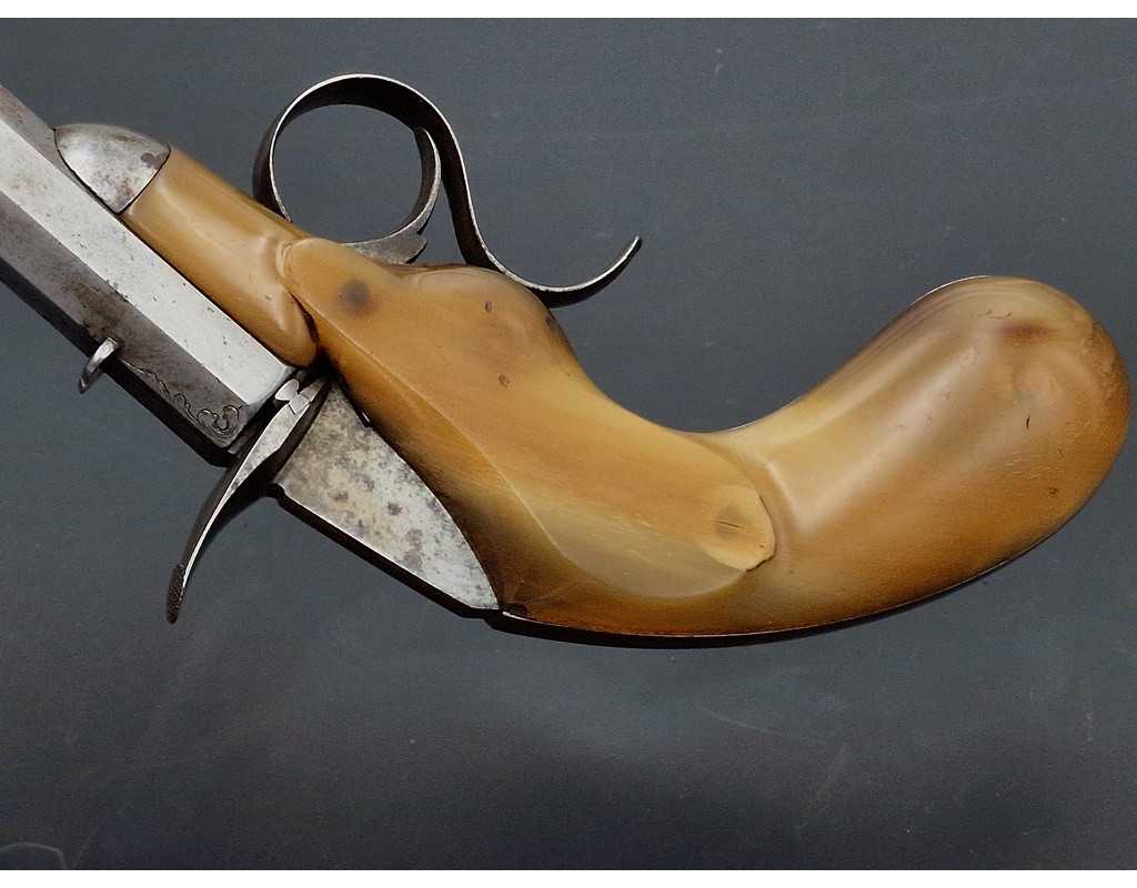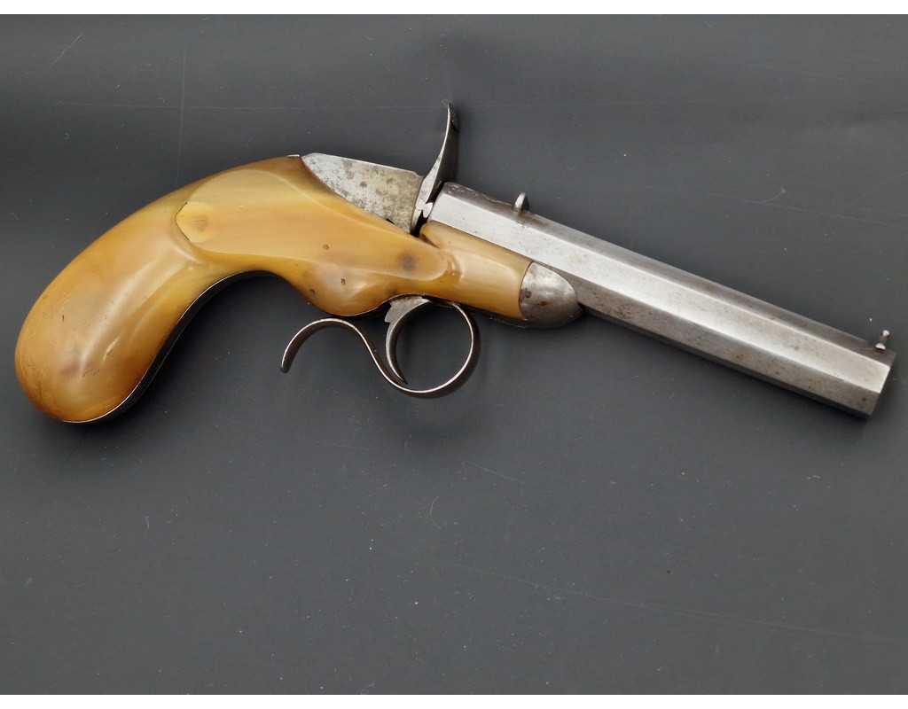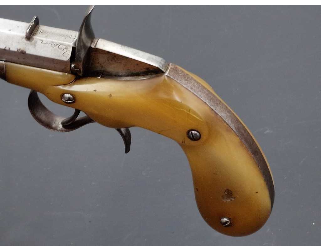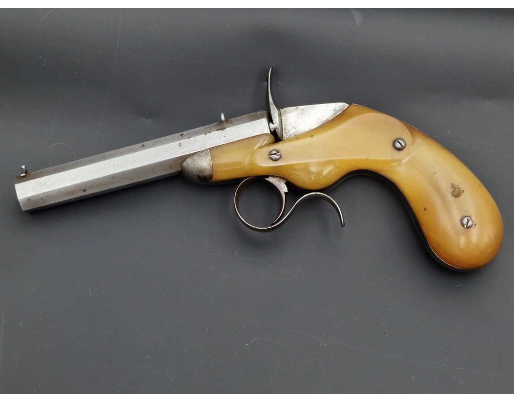 PISTOLET DE SALON FAURE LEPAGE A PARIS CARCASSE MONOBLOC CORNE BLONDE Calibre 22 FLOBERT - FRANCE XIXè