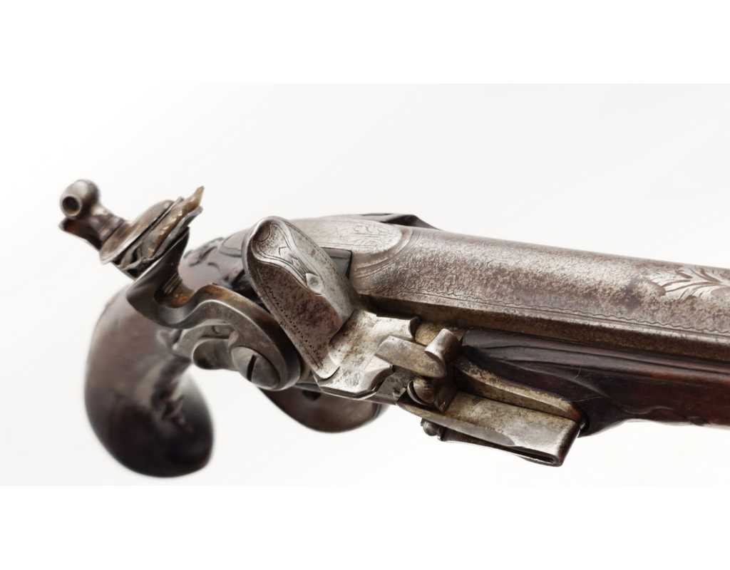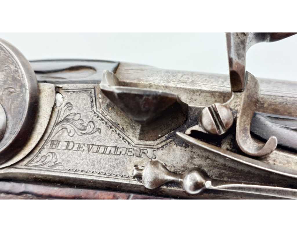 PISTOLET DE VOYAGE A SILEX XVIIIè SIGNATURE DE HENRI DEVILLERS LIEGE 1734-1762 - BELGIQUE 18è