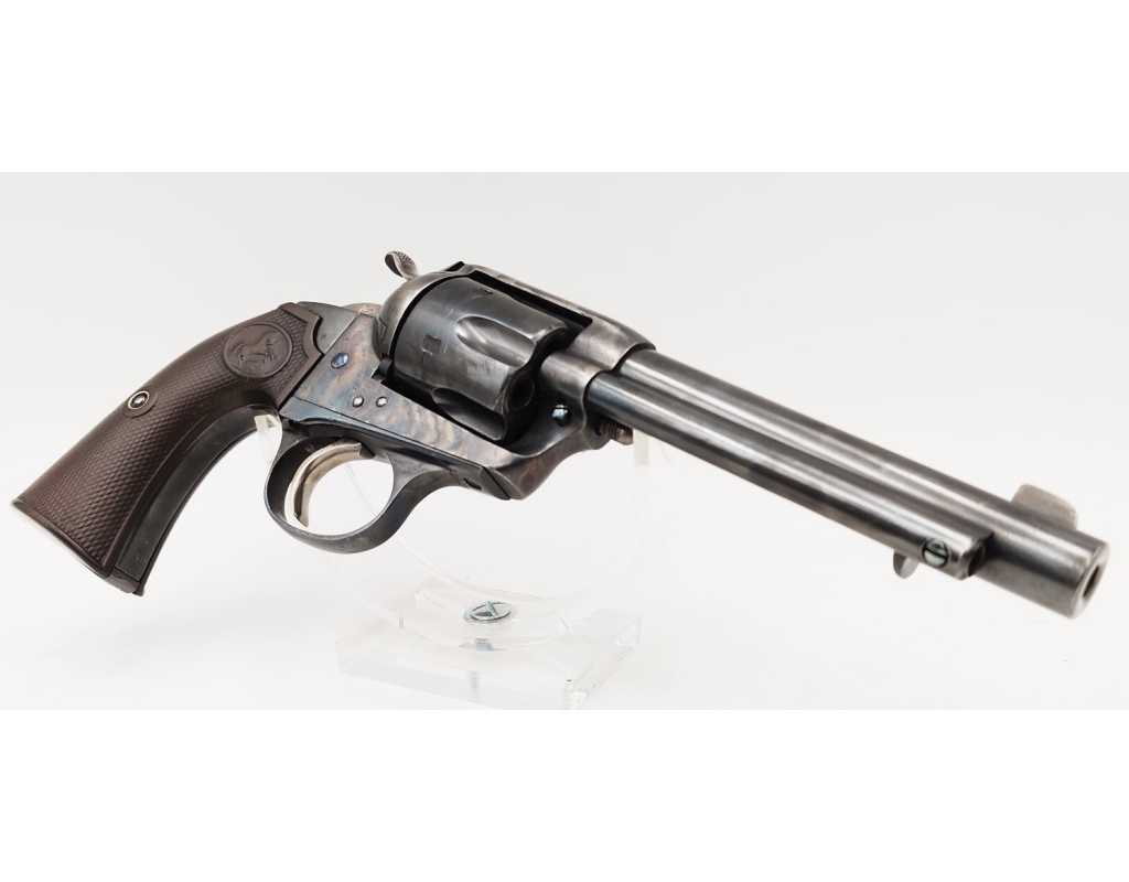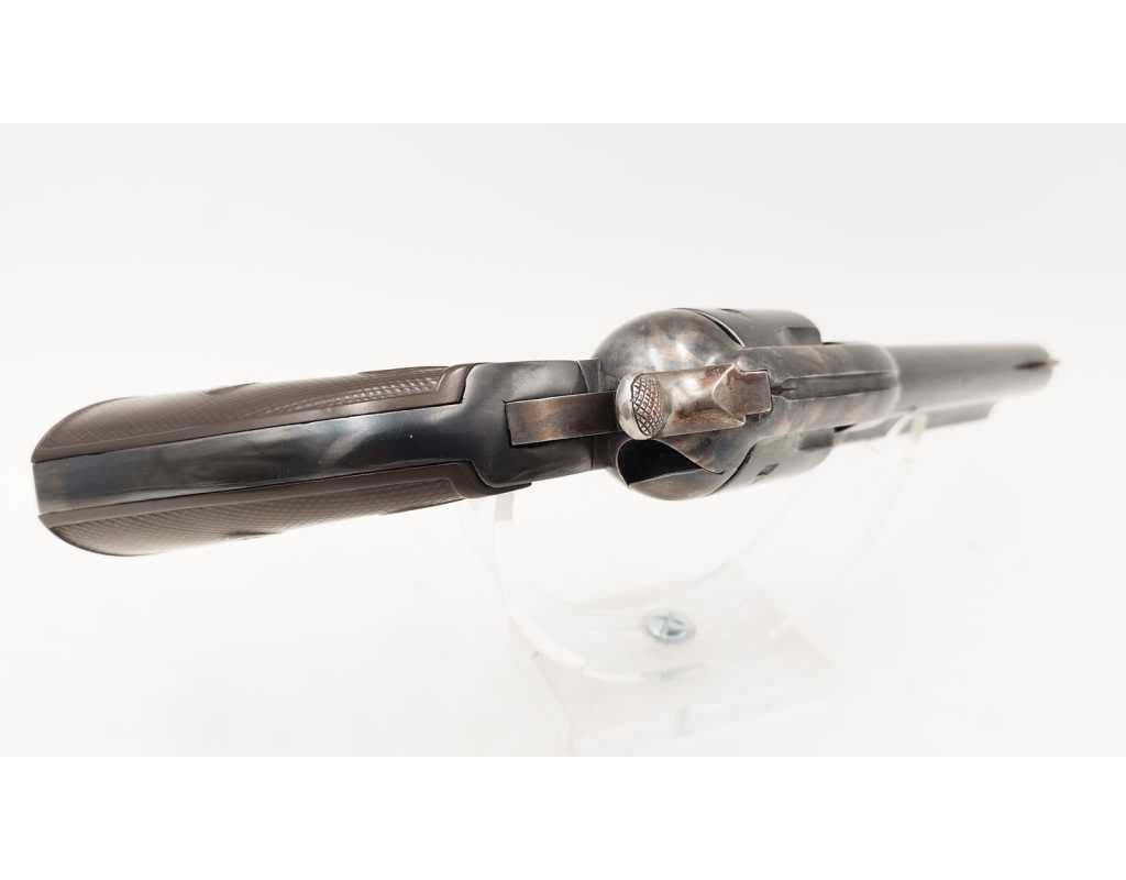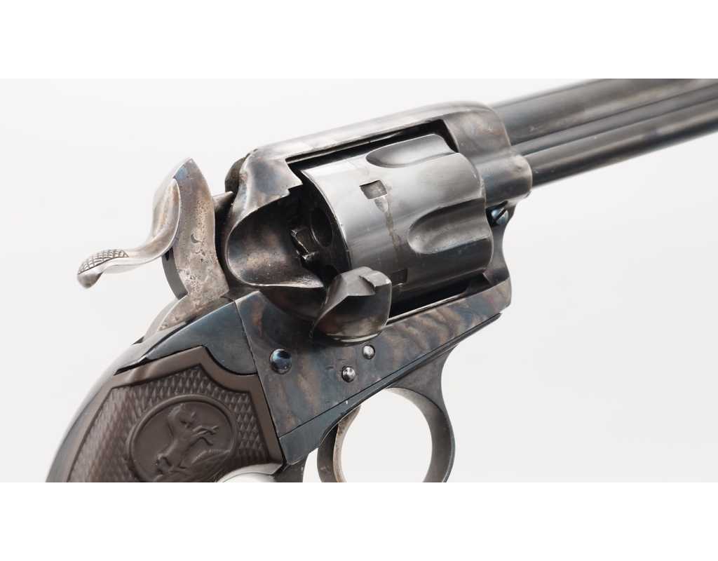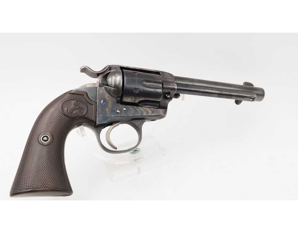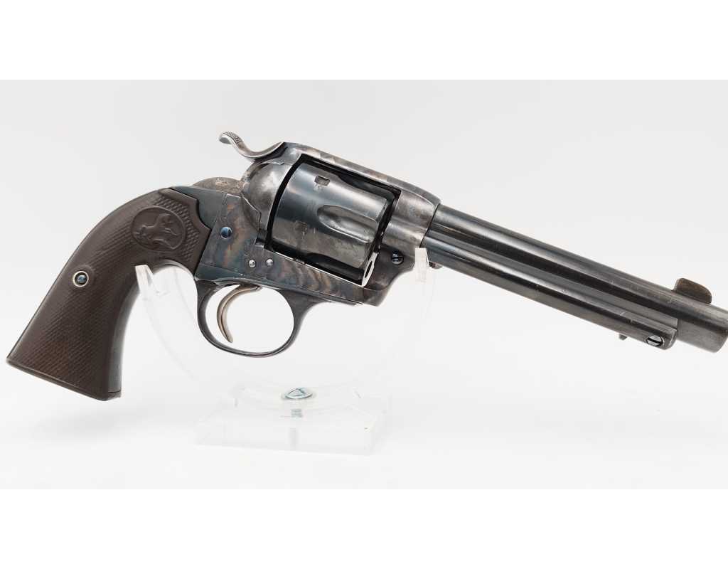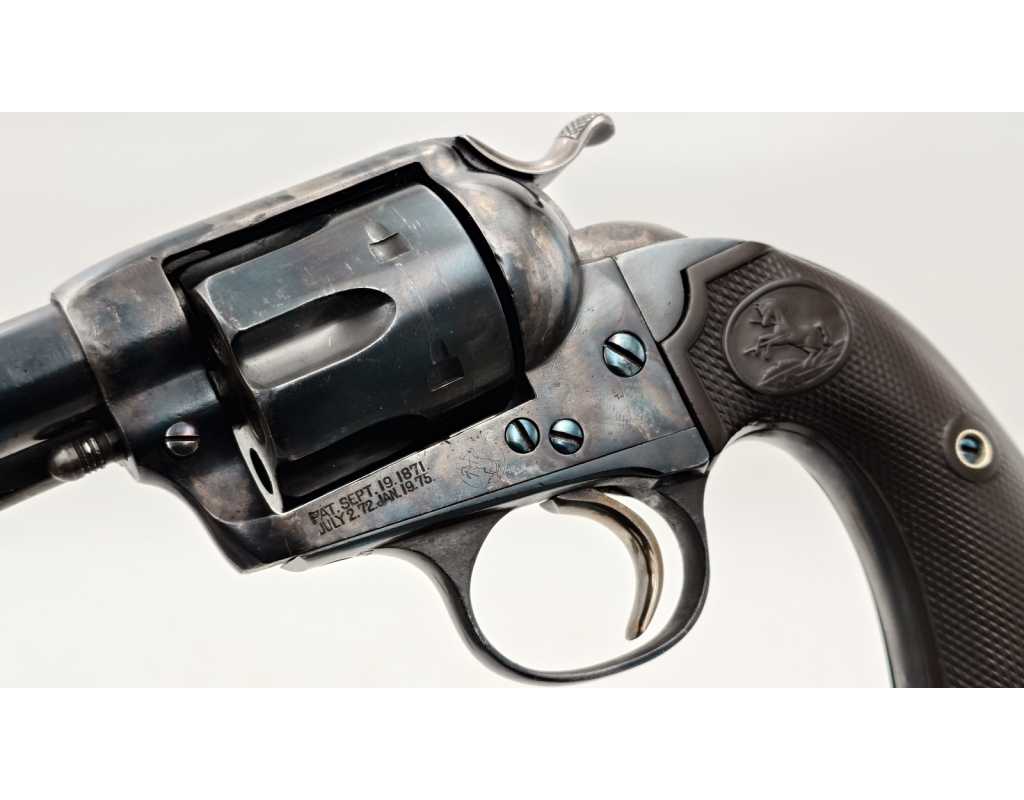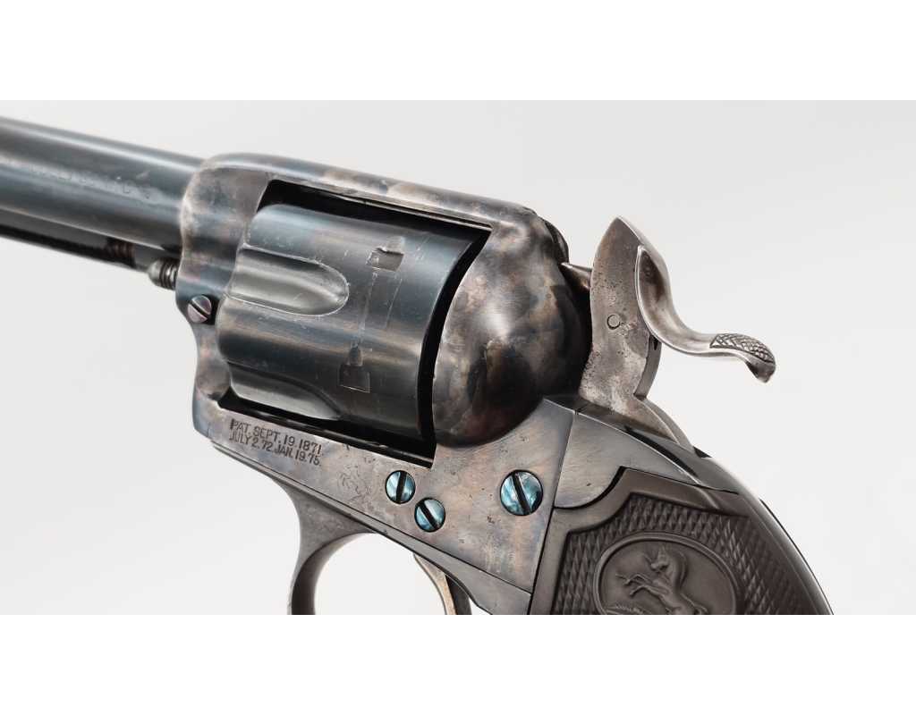 Revolver Colt SAA modèle Bisley numéroté 178037 produit en 1898, capacité de 6 coups en calibre 32/20. Bronzage et jaspage anciennement restauré, fines traces de coups sans oxydation.