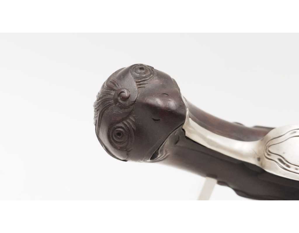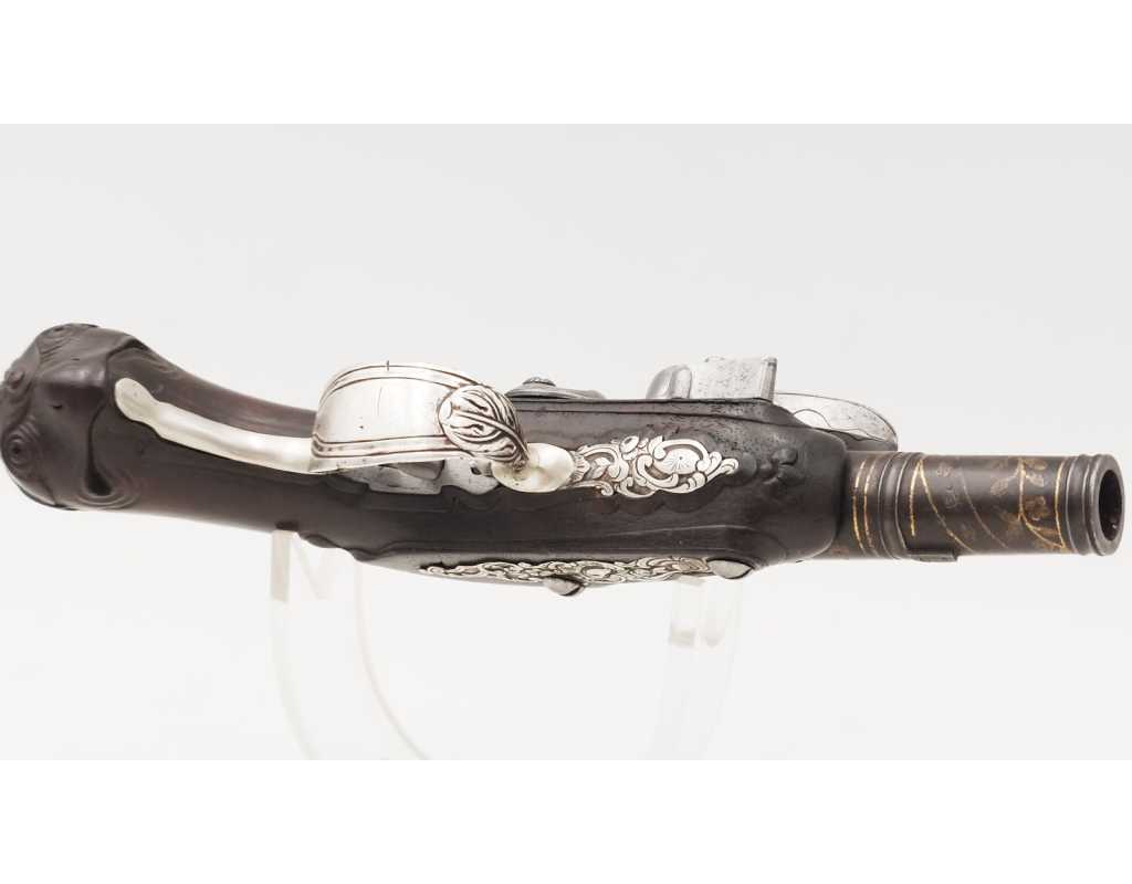 PISTOLET DE POCHE D'OFFICIER DE MARINE CALOTTE TÊTE D'OISEAU SIGNÉ PARIS - FRANCE XVIIIè