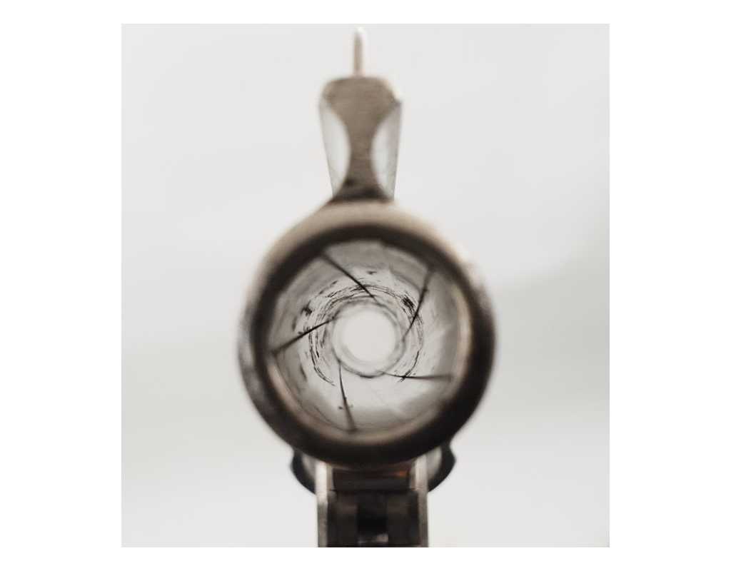 Revolver Smith & Wesson Safety 3è modèle en double action 5 coups calibre 38 S&W numéroté 91372 produit de 1890 à 1898. Nickelage d'origine encore bien présent, pontet bronzé, détente jaspée. Mécanisme complet et fonctionnel sans aucun jeu, toutes pièces d'origine au même numéro. Canon de 3 pouces 1/4 (8cm) à rayures brillantes avec légère usure et taches. Belles plaquettes de crosse en gutta-percha noire.