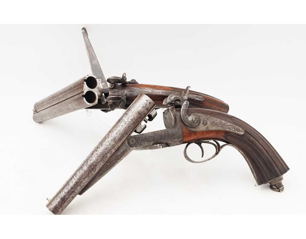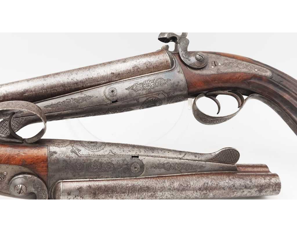 RARE PAIRE DE PISTOLETS DE VÉNERIE SYSTÈME LEFAUCHEUF CALIBRE BALLE RAYÉ 16 À BROCHE - FRANCE XIXè