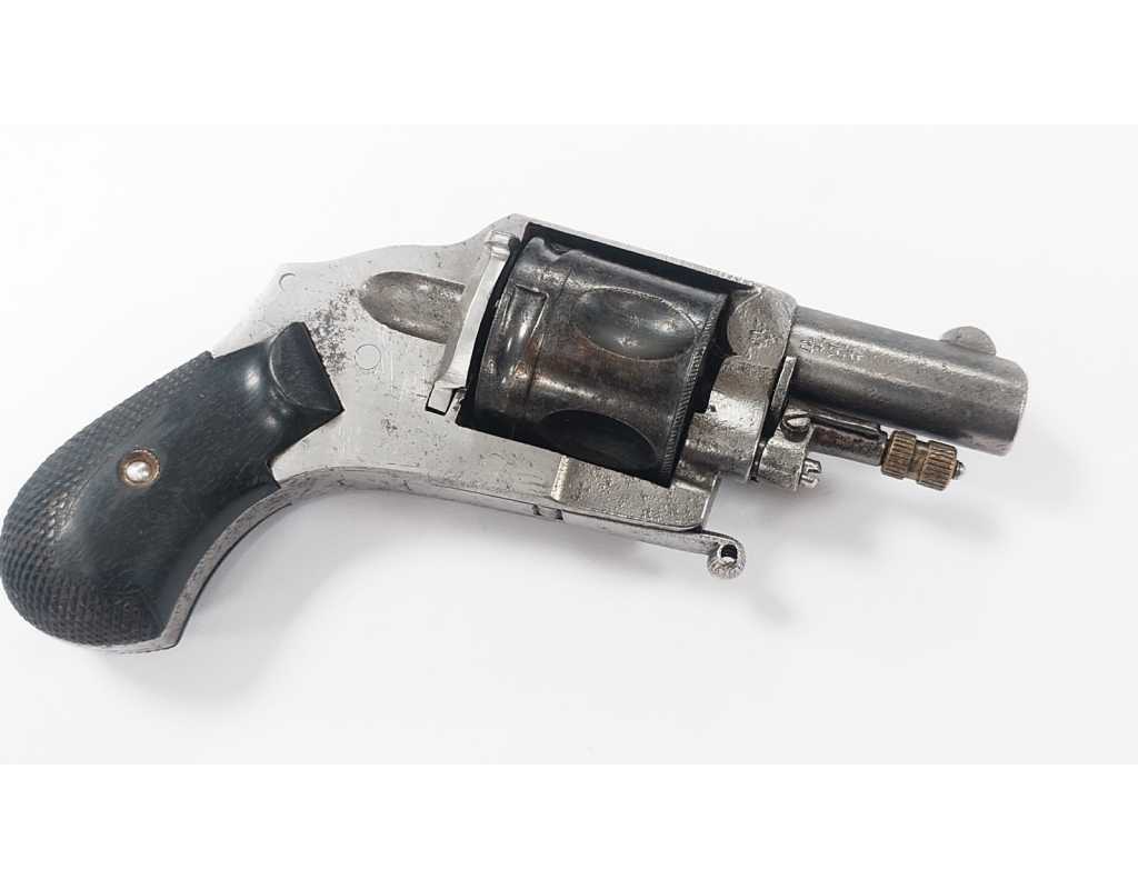 Revolver de poche hammerless calibre 320 double action. Usures et taches, bon fonctionnement mécanique, arme complète et fonctionnelle. LT 13cm