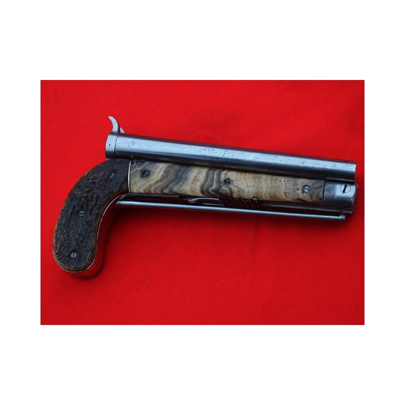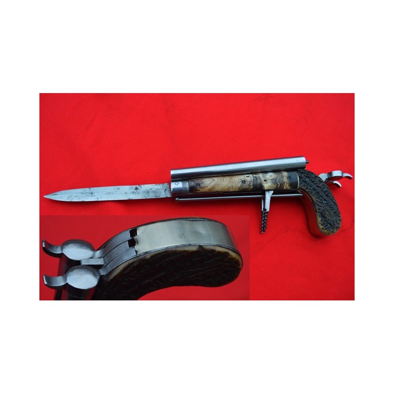 PISTOLET COUTEAU A DOUBLE CANONS A PERCUSSION - FR XIXè