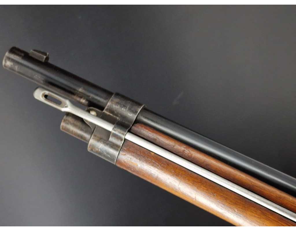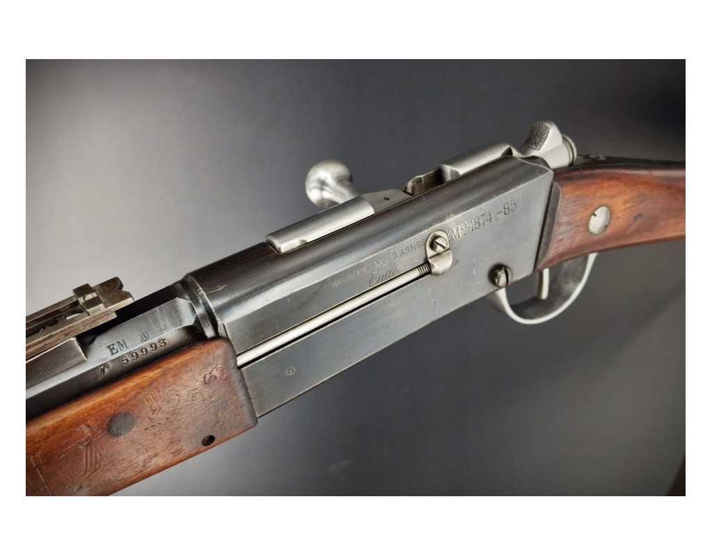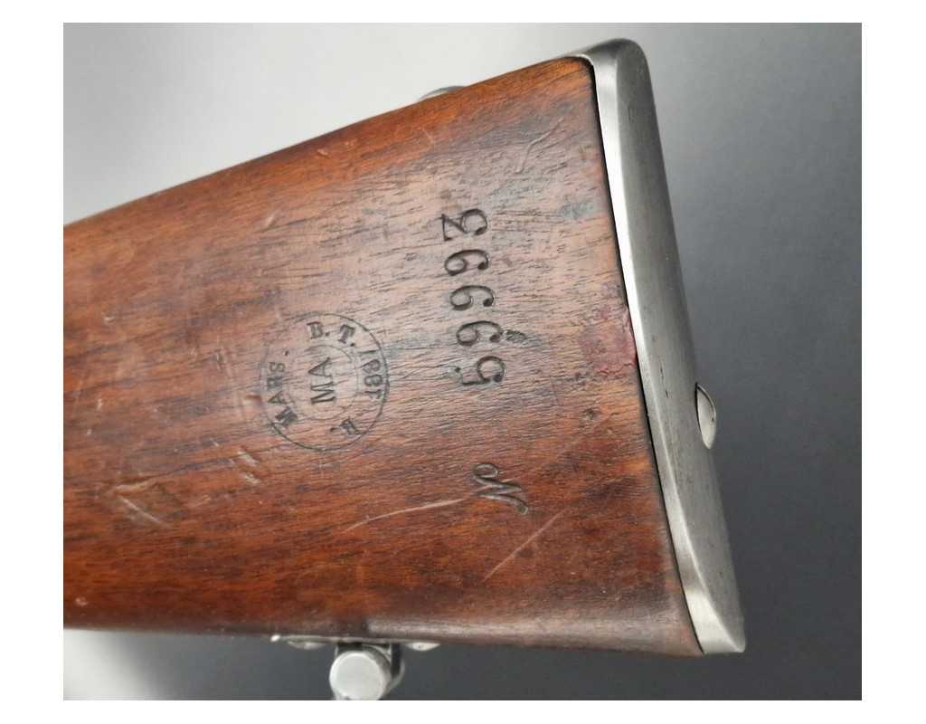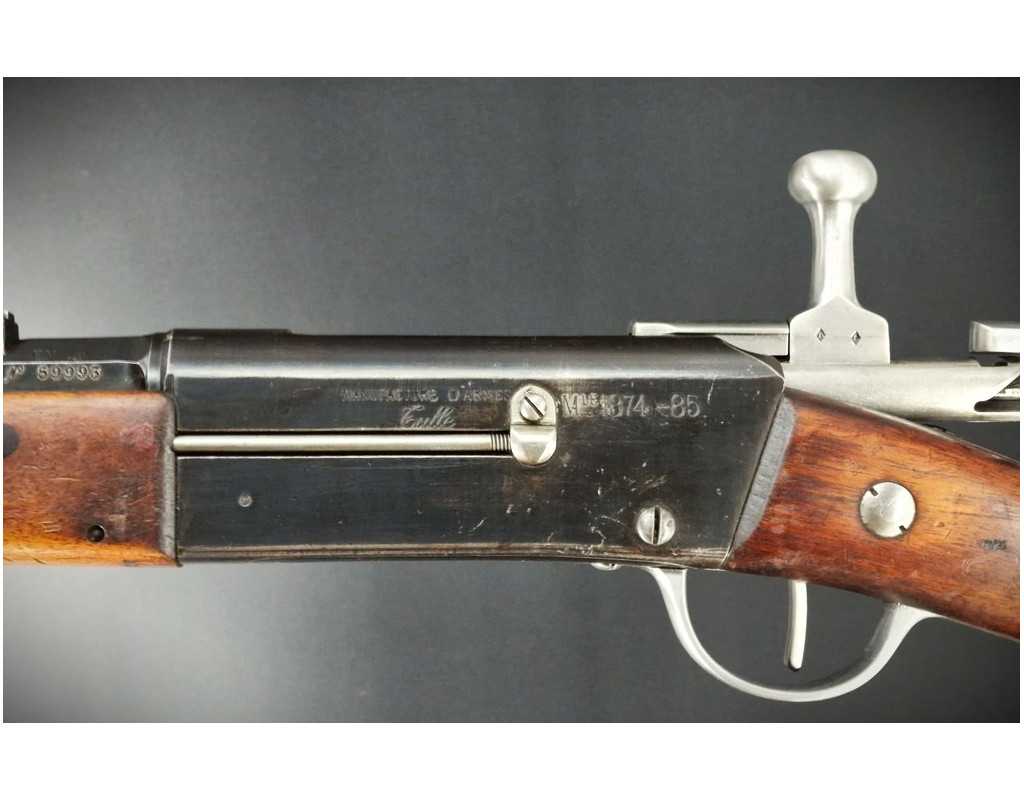 Chaque pièce de l’arme au même numéro « N 59993», boitier marqué du modèle 1874 - 85 et du lieu de fabrication « MANUFACTURE D'ARMES TULLE ». Longueur totale: 124,3cm.