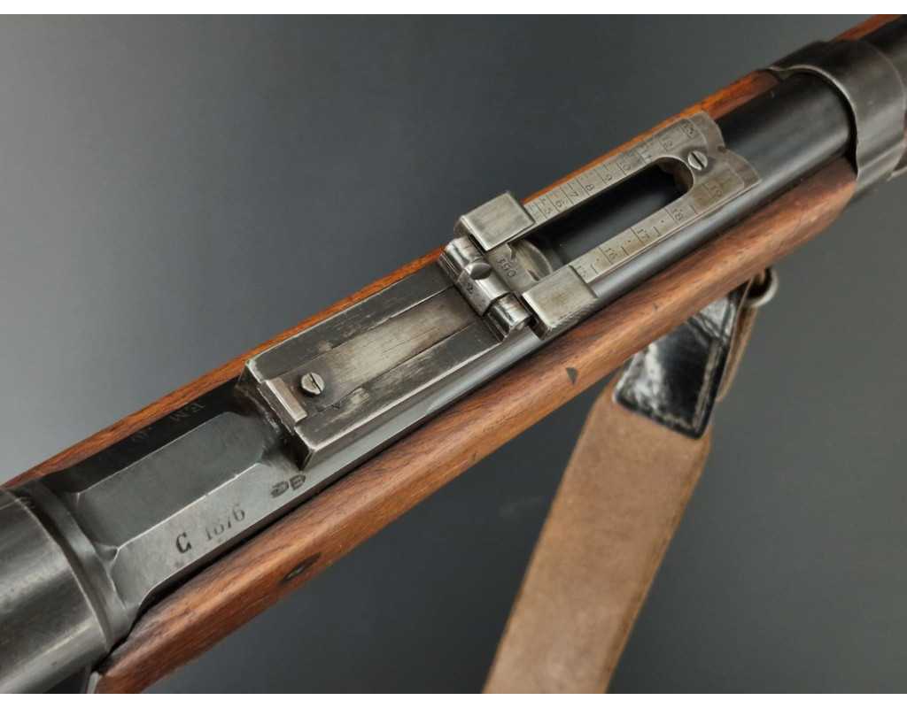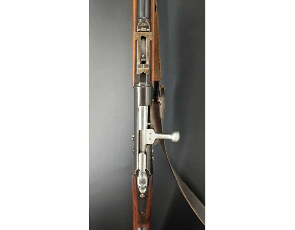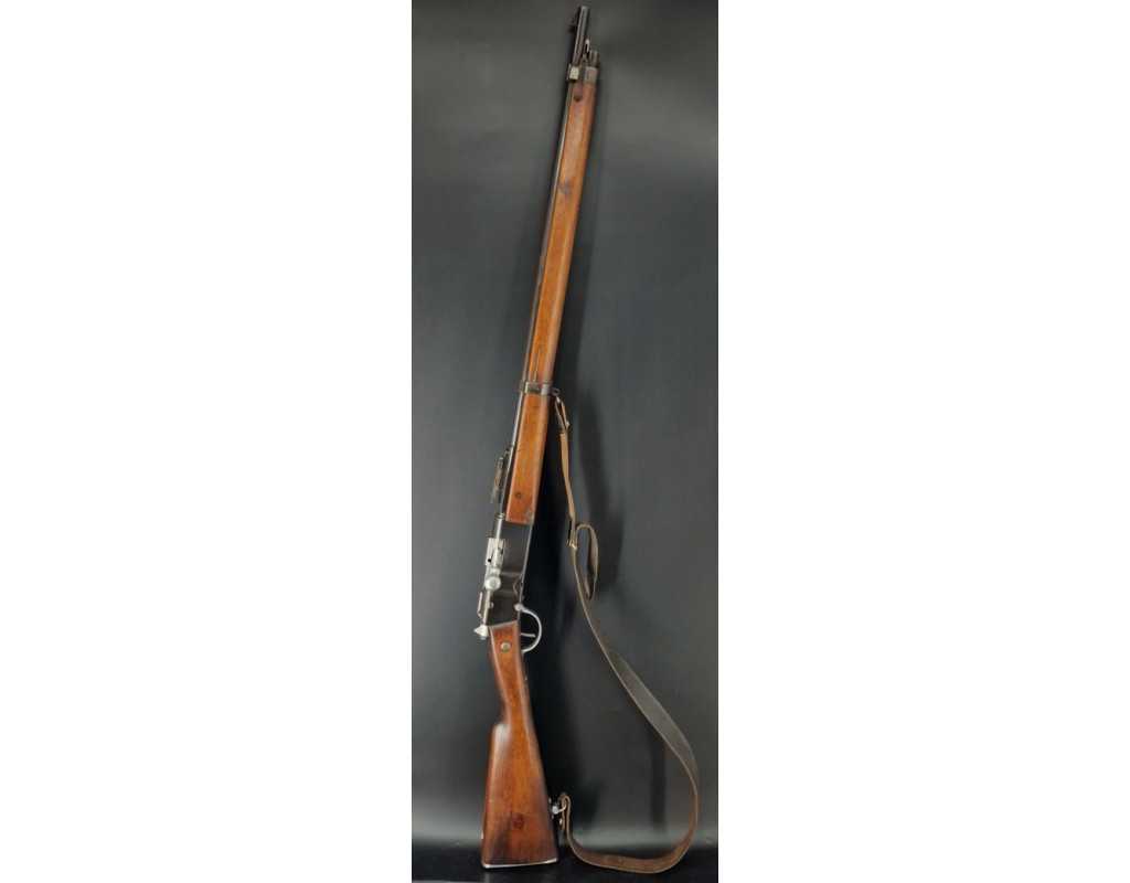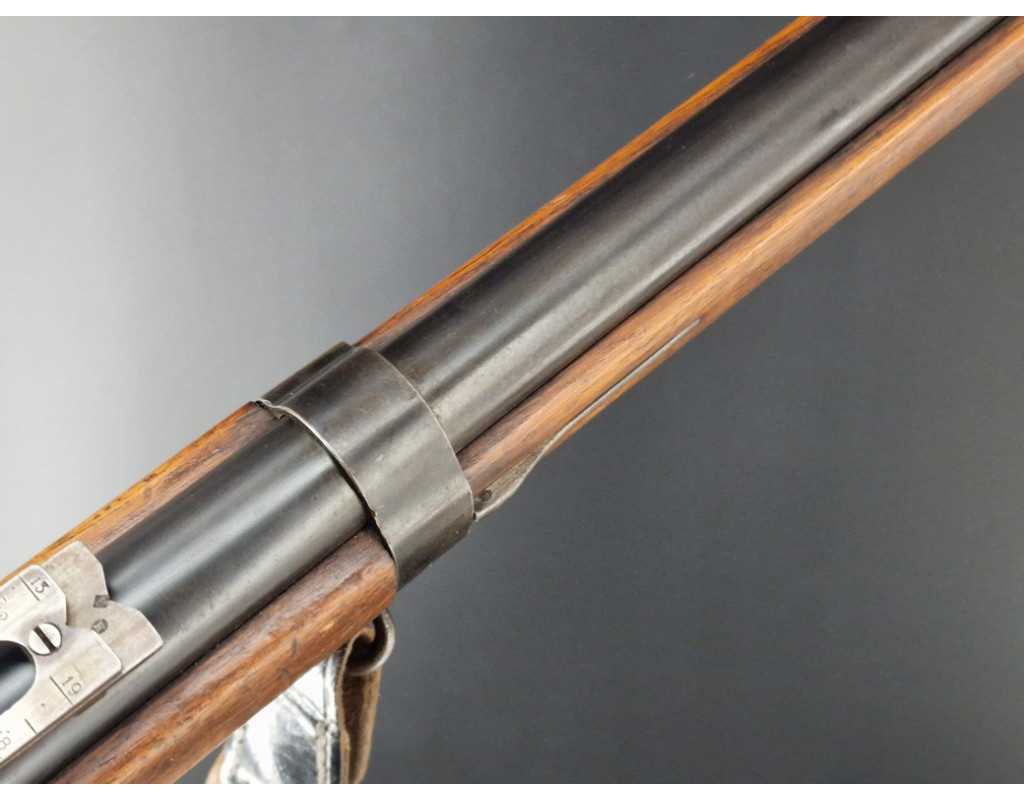 Chaque pièce de l’arme au même numéro « N 59993», boitier marqué du modèle 1874 - 85 et du lieu de fabrication « MANUFACTURE D'ARMES TULLE ». Longueur totale: 124,3cm.