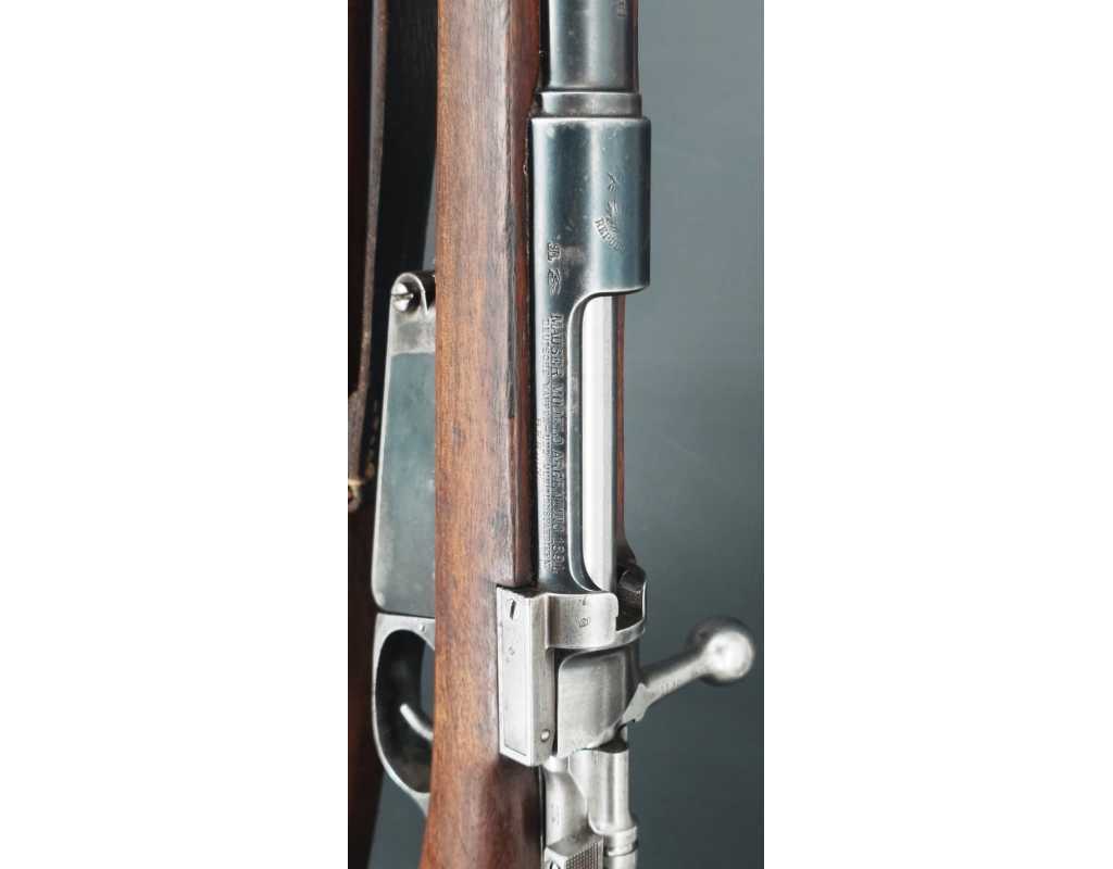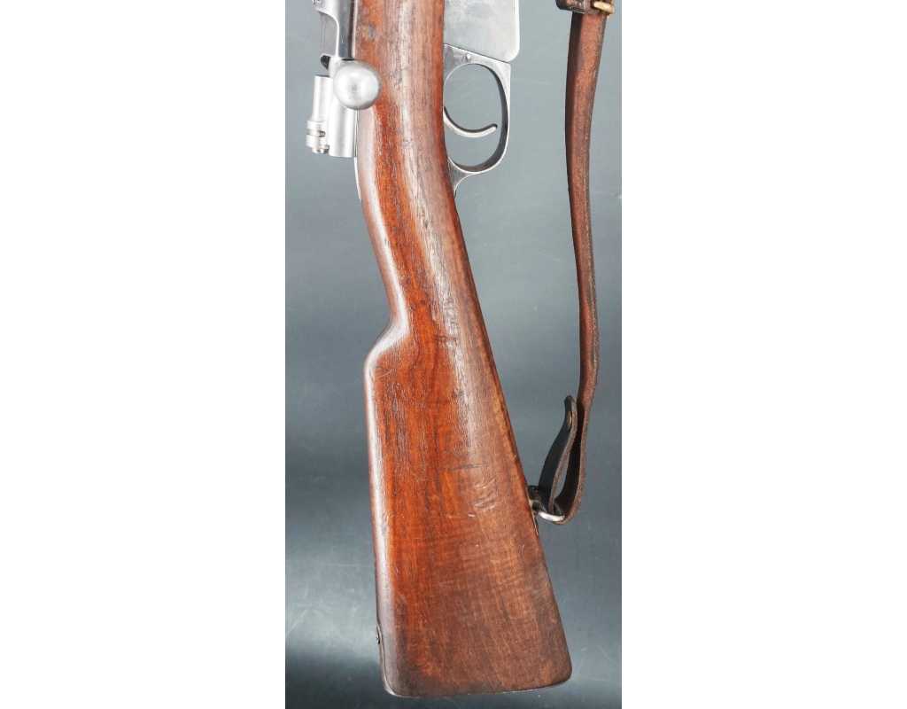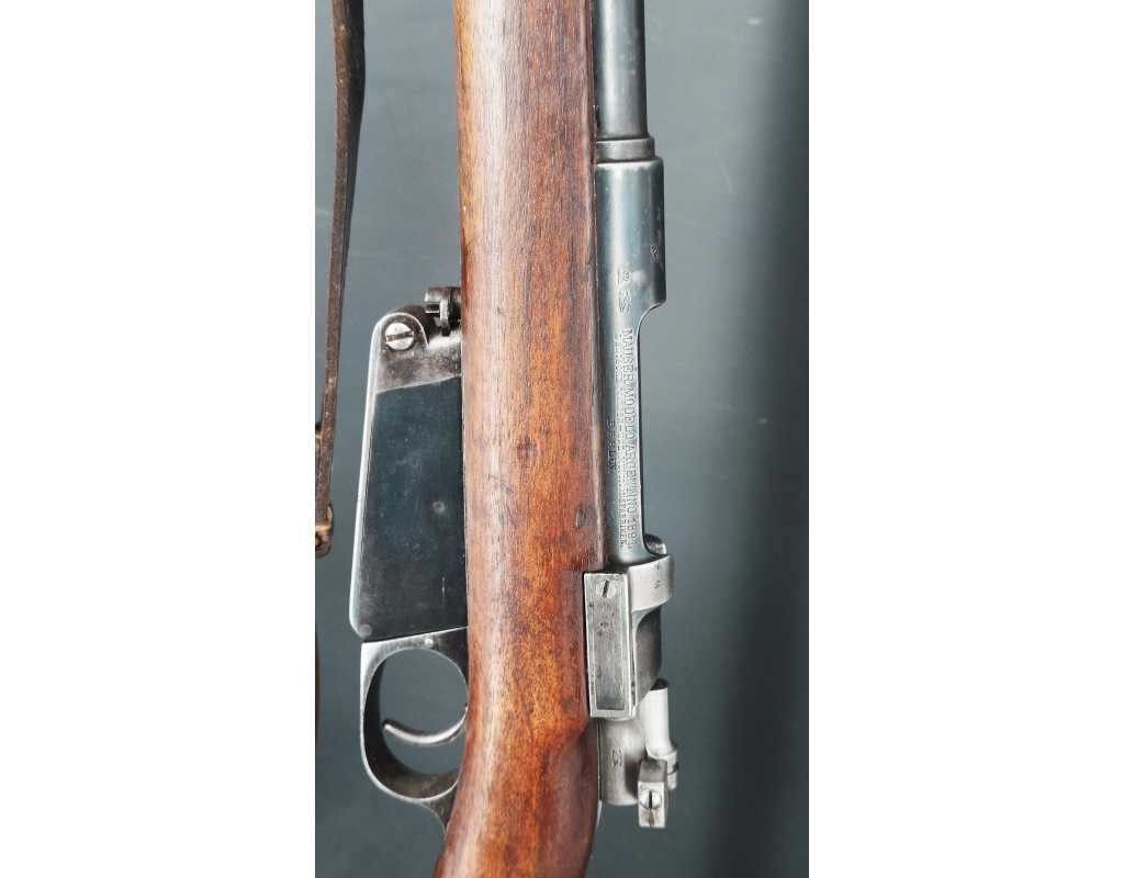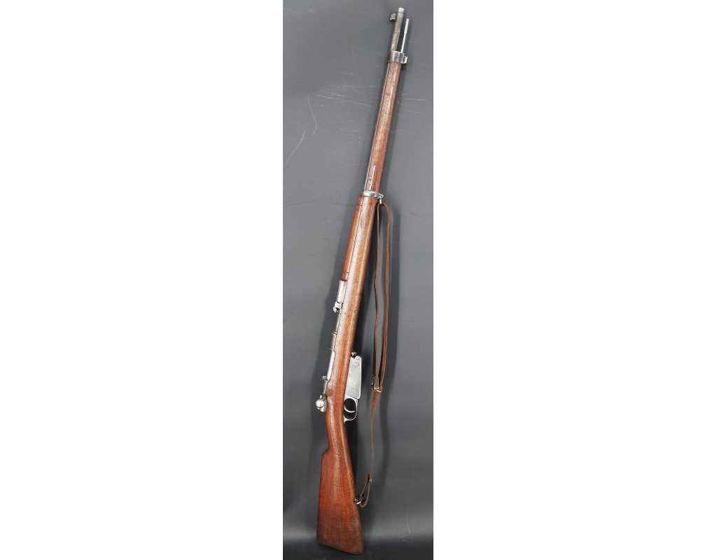 Fusil Mauser argentin modèle 1891 calibre 7.65x53 Arg. dans son bronzage d'origine, mécanisme complet et fonctionnel au numéro, belle patine, rayures brillantes satinées légèrement usagées et rugeuses.