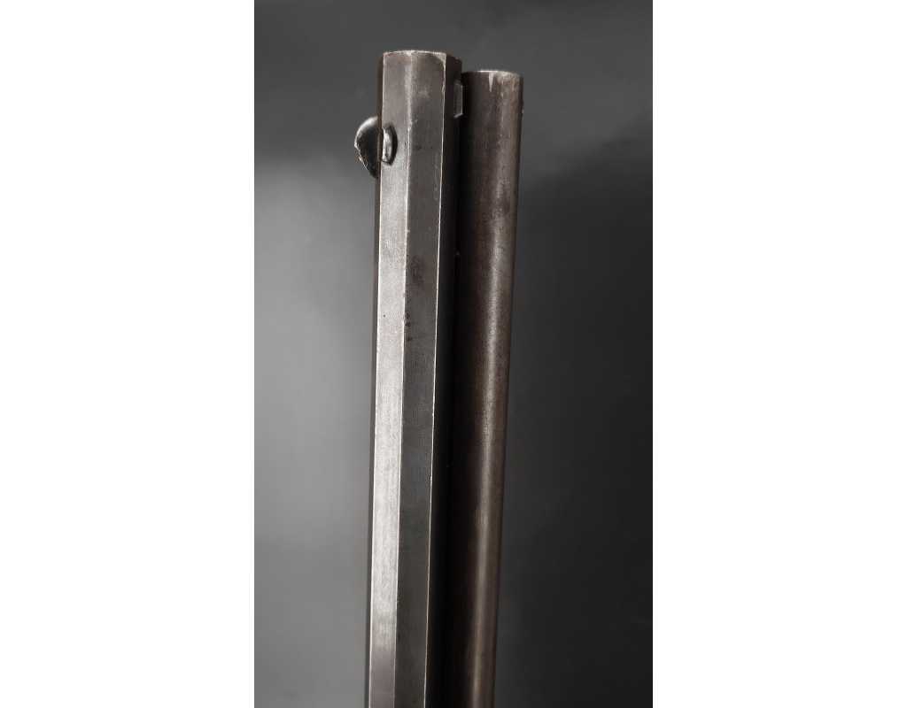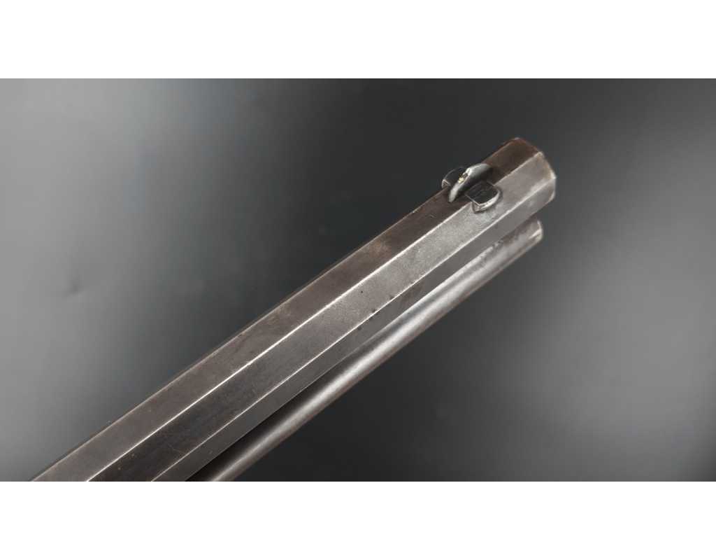 Peu courant première modèle proposé par Marlin Firearms en puissant calibre 40-60 numérotée 11401 produite avant 1890. Ce modèle en version Rifle à canon octogonal de 28’’. fut produit à environ 20 000 exemplaires et constitua le précurseur d’une série d’armes à levier sous garde à succès. C’est une arme longue utilisant les cartouches métalliques poudre noire historique de l’époque de la conquête de l’Ouest.