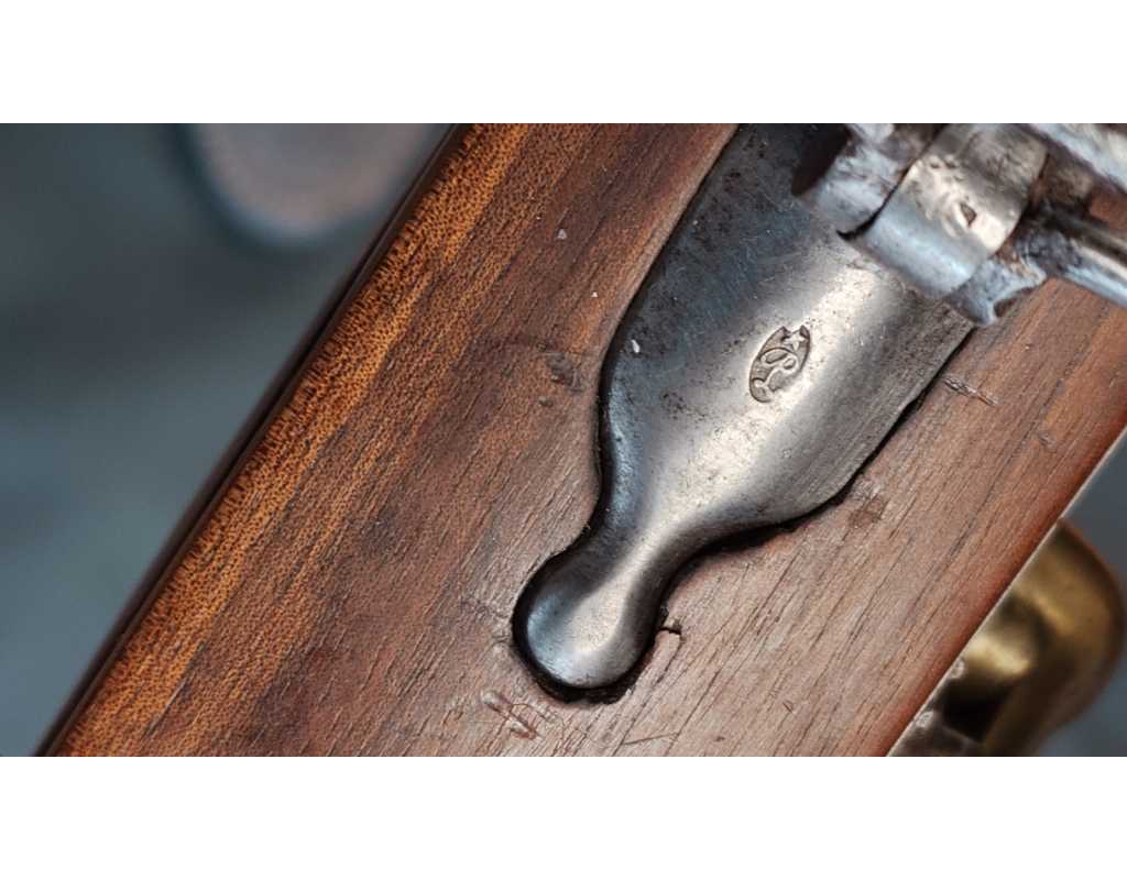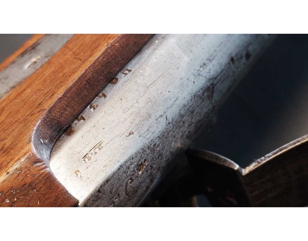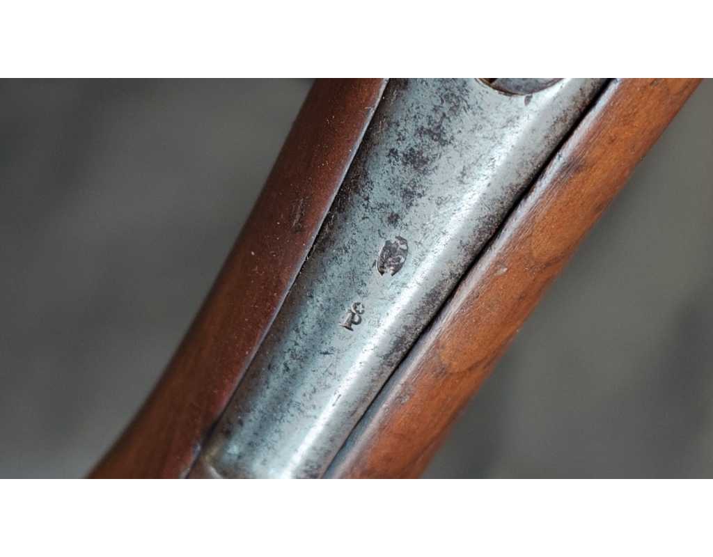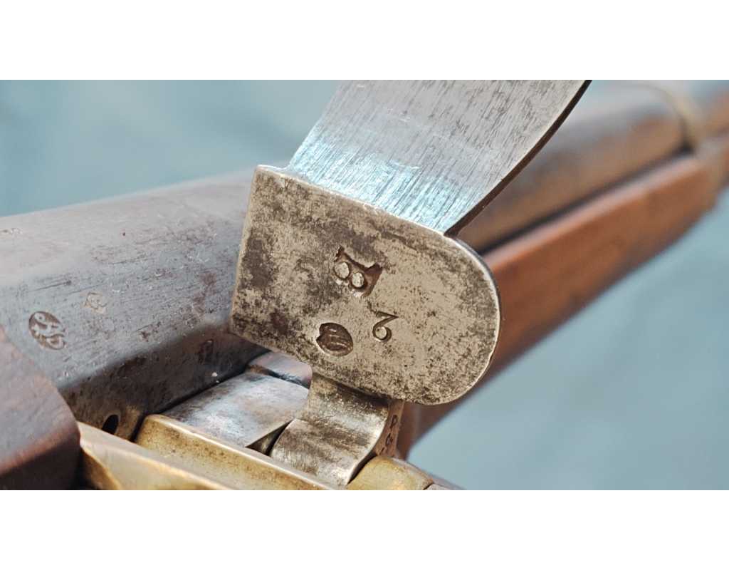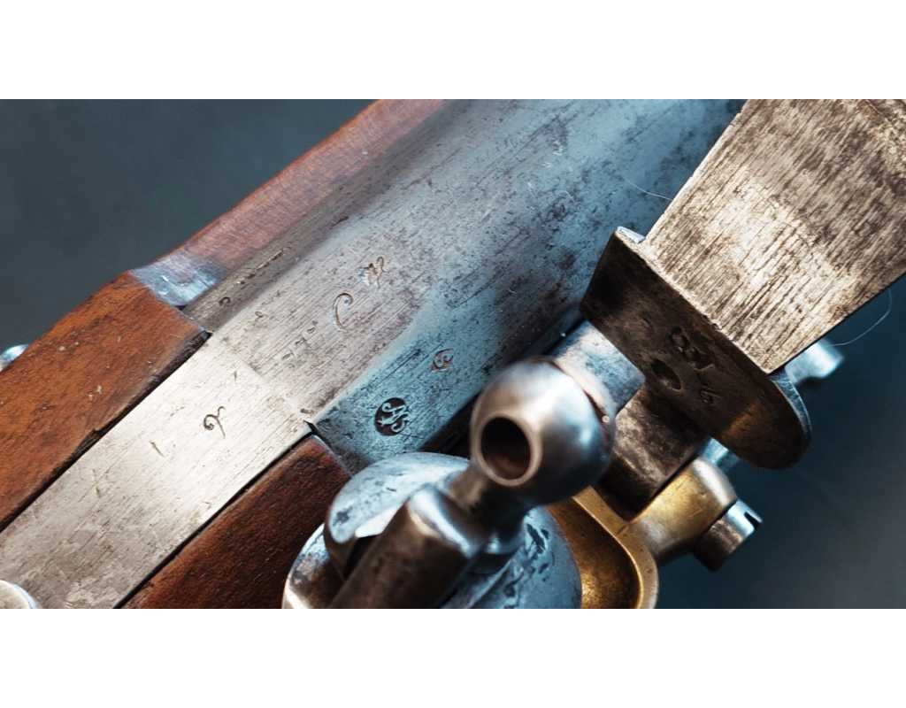 Arme complète et parfaitement homogène avec toutes ses pièces d'origine patinées, toutes bien poinçonnées, infimes traces d'oxydation localisées. Beaux marquage de Manufacture, poinçons de conformités non atténués.