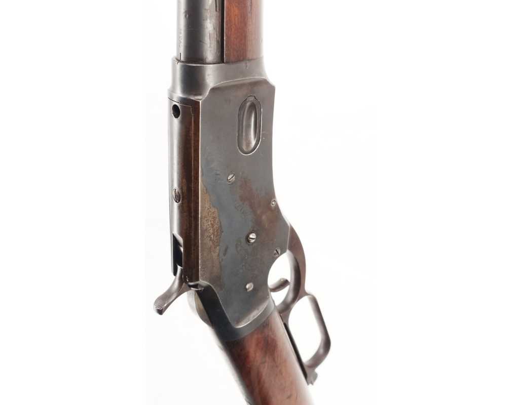 Large boitier avec levier d'armement en S, brevet de 1879 sur la queue de culasse encore bien lisible, indication du calibre 38 au tonnerre et marquage WHITNEYVILLE ARMORY, CT. U.S.A. sur le canon. Bronzage patiné avec fines taches, mécanisme complet et fonctionnel entièrement d'origine, numéroté R853. Monture en noyer d'origine sans usure particulière, angles bien conservés, plaque de couche arrondie. Canon à pans long de 61cm à rayures hélicoïdales d'aspect brillantes sans usure prononcées.