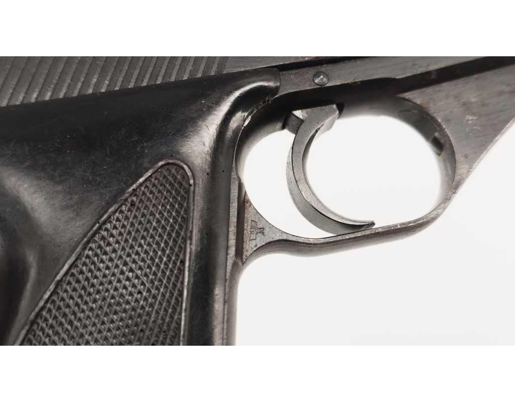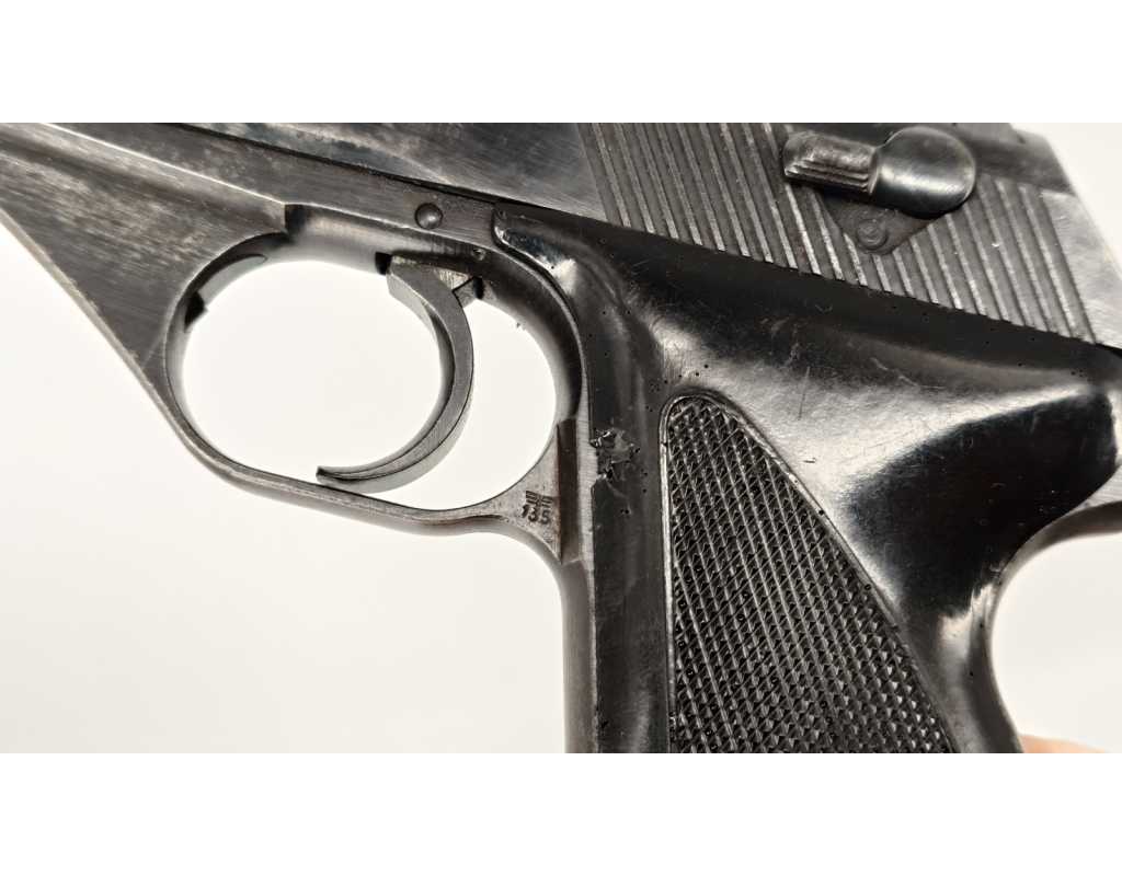 Pistolet Mauser Hsc seconde guerre avec réception de waffenamt code 135, finition d'origine légèrement patiné, culasse mobile, plaquette repro