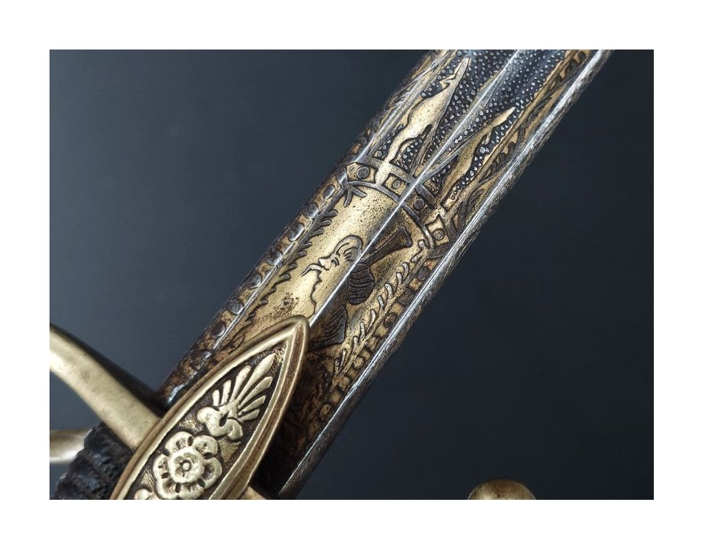 SABRE D'OFFICIERS SUPERIEURS D'ARTILLERIE A CHEVAL DE LA GARDE ROYALE MONTURE A LA CHASSEUR - FRANCE RESTAURATION