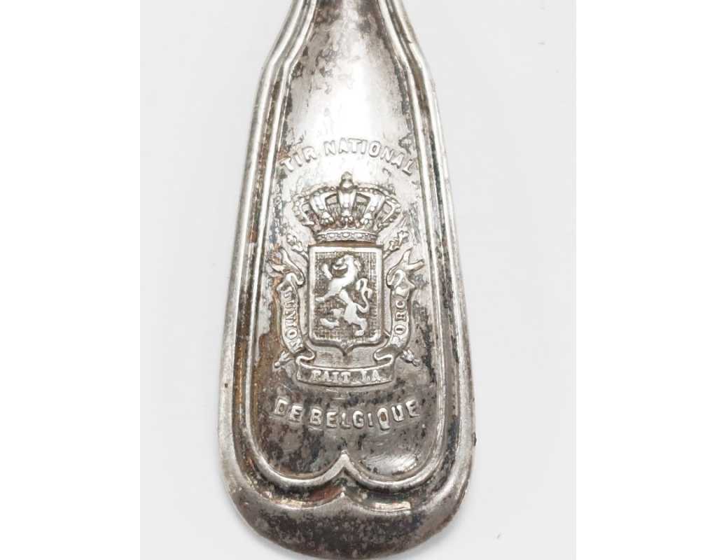 BELGIQUE TROPHÉE CHAMPIONNAT DE TIR NATIONALE CUILLIÈRE EN ARGENT BLASON DEVISE L'UNION FAIT LA FORCE