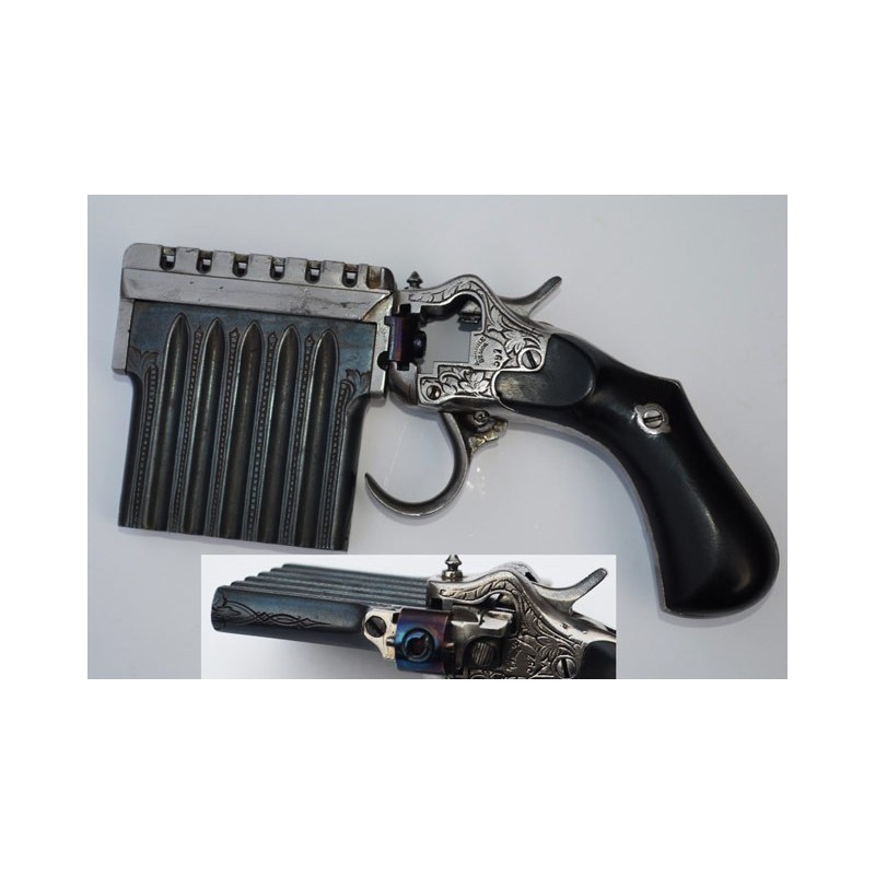 PISTOLET A REPITITION JARRE 6 CANONS DIT HARMONICA Cal 8mm Broche - FR XIXè