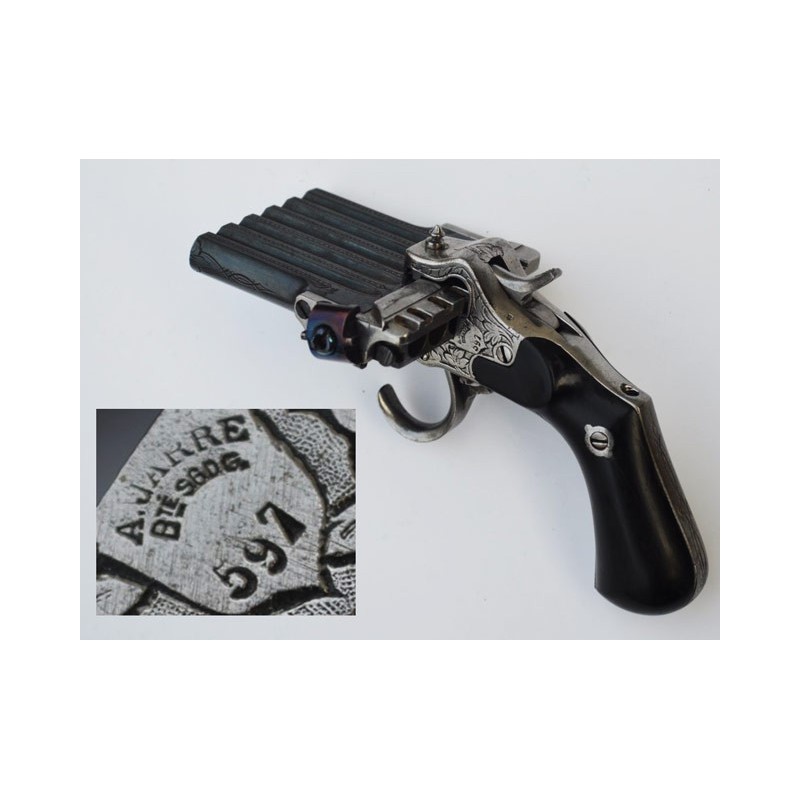 Rarissime petit pistolet Jarre en calibre 8mm à broche, bien poinçonné A Jarre Breveté SGDC et numéroté 597, système à répétition dit Harmonica