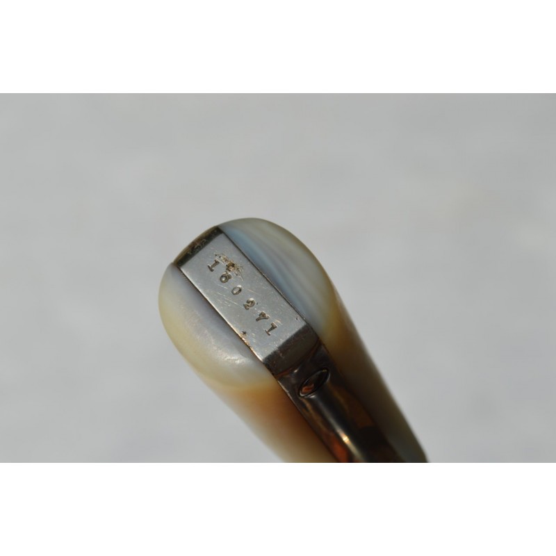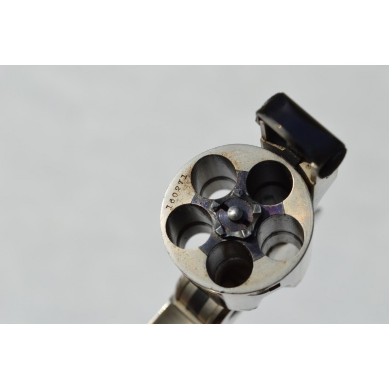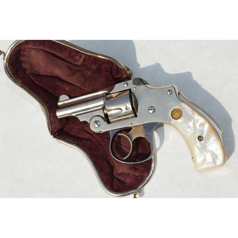 Mécanisme complet et fonctionnel avec toutes pièces d'origine au même numéro, sans entre fer excessif entre le canon et le barillet, excellent verrouillage sans jeu, indexation parfaite. Canon rond à méplat supérieur, long de 2 pouces (5cm), rayures d'aspect miroir sans usure ni tache. Belles plaquettes de crosse en nacre avec logo S&W doré sans aucune ébréchure. Superbe t peu commun modèle de la maison Smith & Wesson à découvrir dans un remarquable état de conservation comme neuf. Etui porte monnaie en velours d'époque et en excellent état.