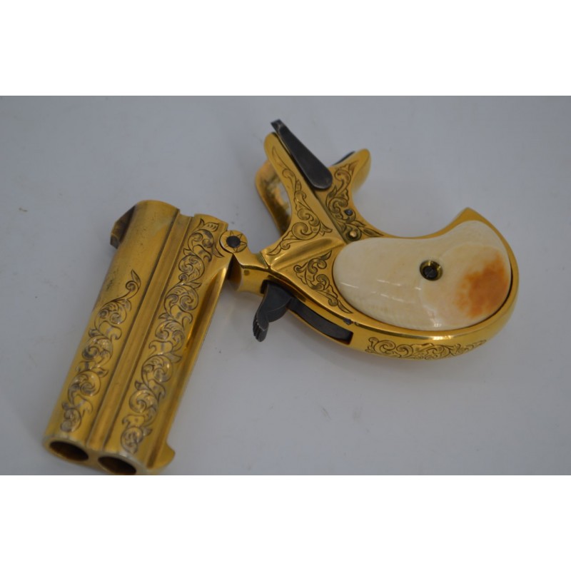 PISTOLET REMINGTON DOUBLE DERRINGER LUXE Doré en COFFRET Calibre 41 RIMFIRE - US XIXè