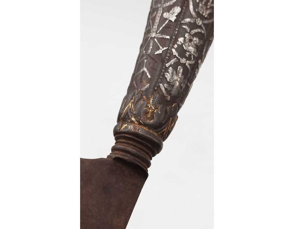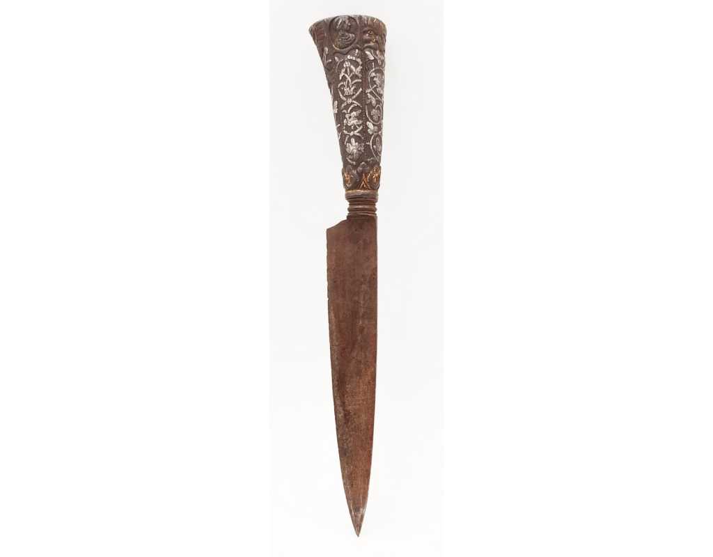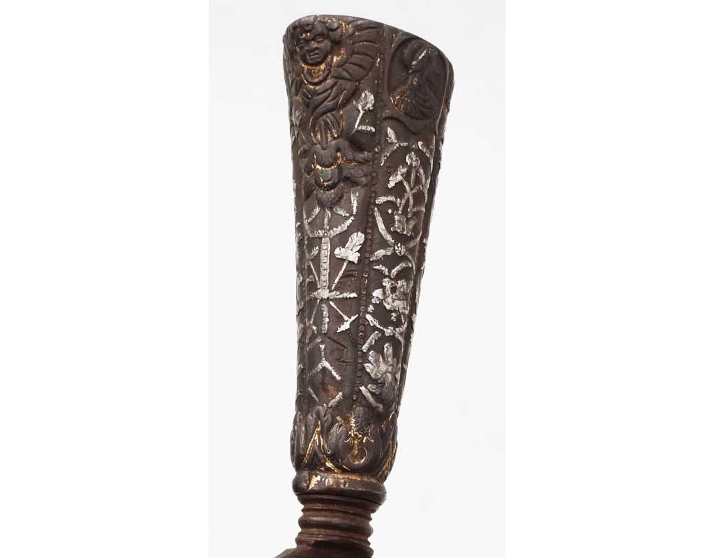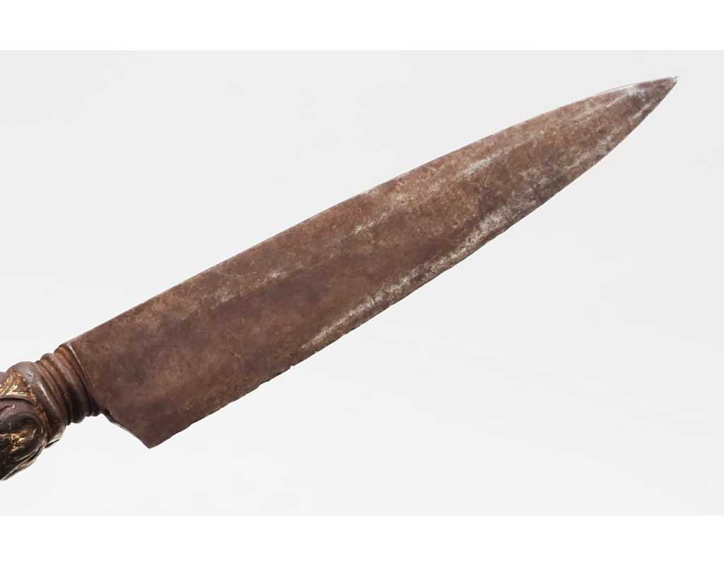 BEAU ET RARE COUTEAU DAGUE STYLET ITALIE XVIè SERAPHIN EN FER ARGENT ET OR