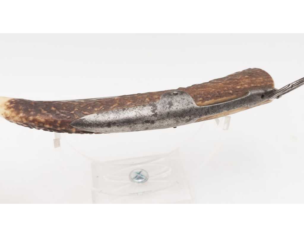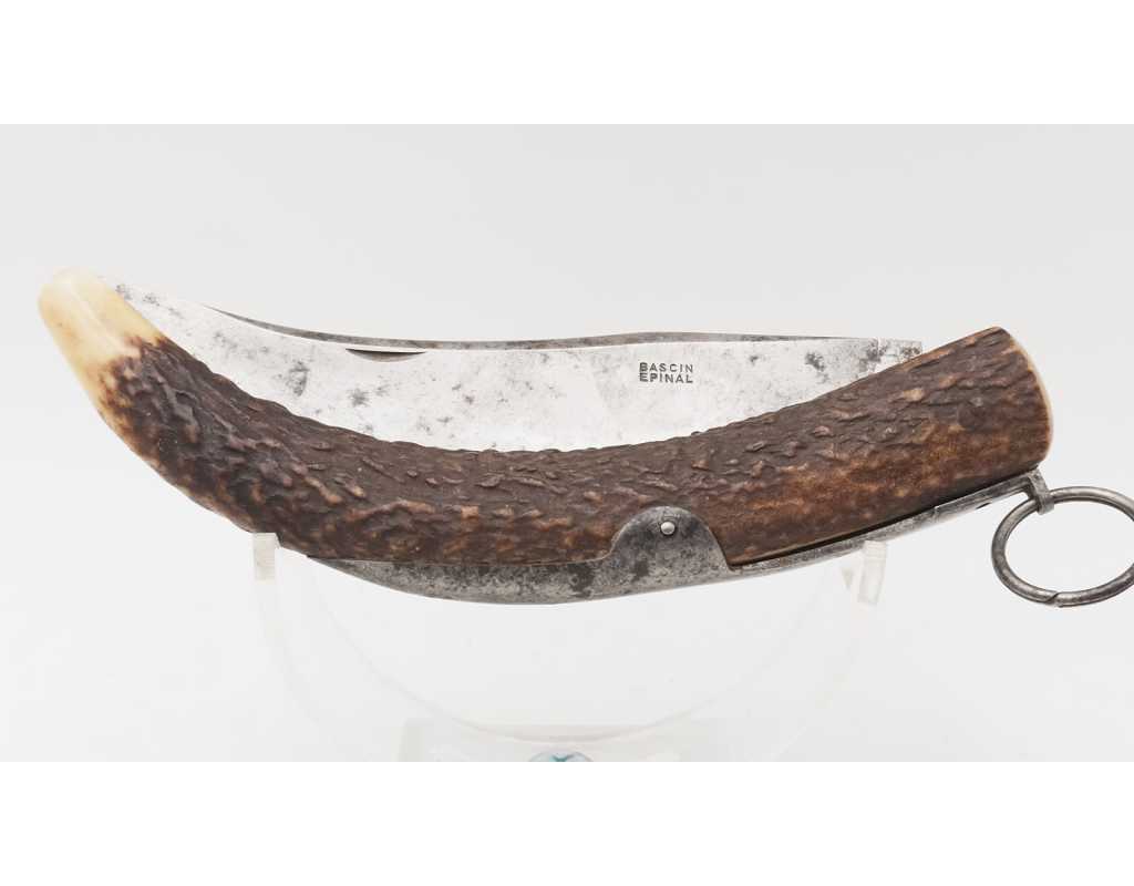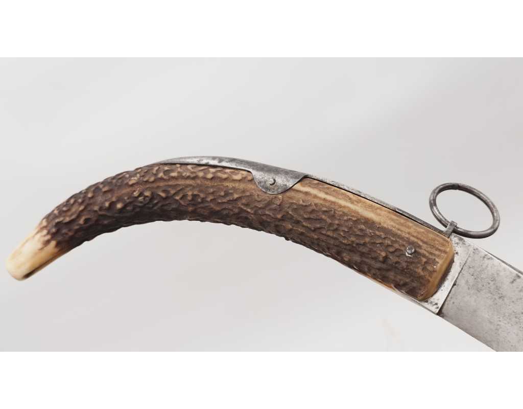 FORT COUTEAU PLIANT DE CHASSE CORNILLON CORNE DE CERF RESSORT À PALANQUILLE BASCIN À EPINAL - FRANCE FIN XIXè