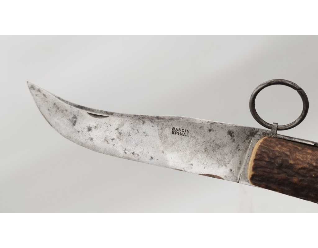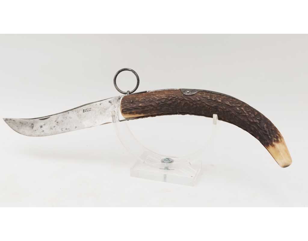 FORT COUTEAU PLIANT DE CHASSE CORNILLON CORNE DE CERF RESSORT À PALANQUILLE BASCIN À EPINAL - FRANCE FIN XIXè OU DEBUT XXè