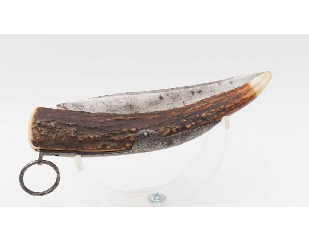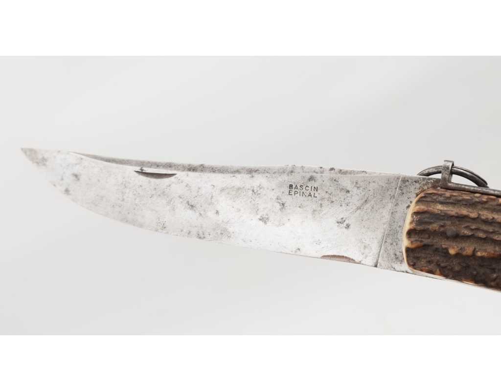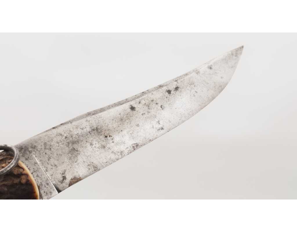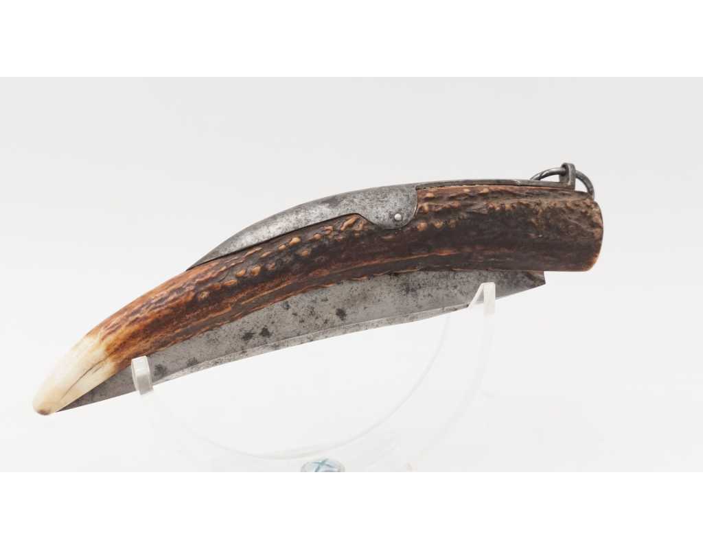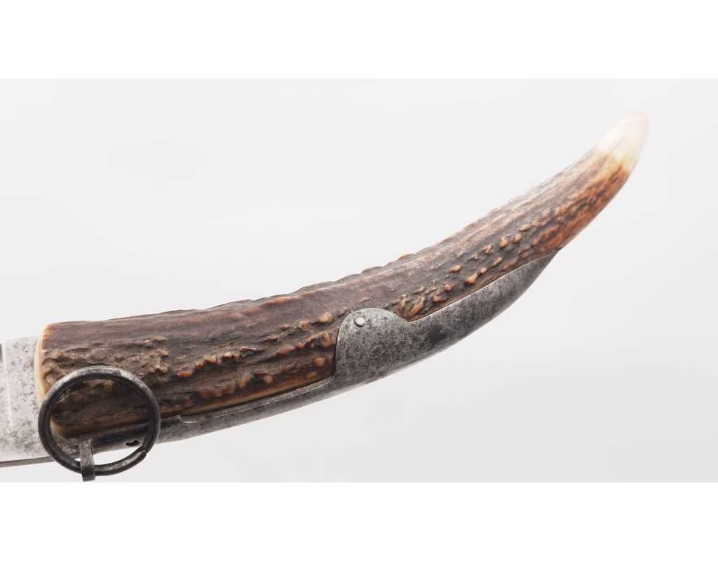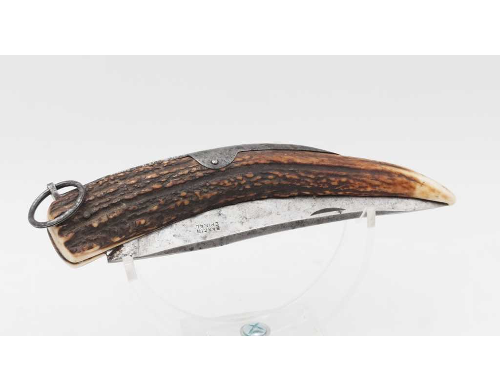 FORT COUTEAU PLIANT DE CHASSE CORNILLON CORNE DE CERF RESSORT À PALANQUILLE BASCIN À EPINAL - FRANCE FIN XIXè
