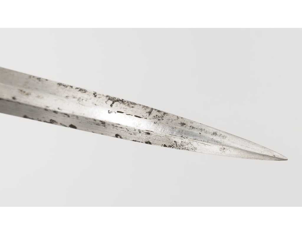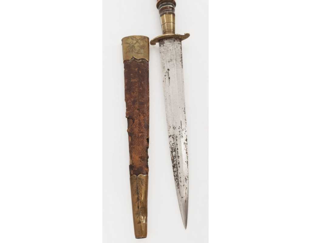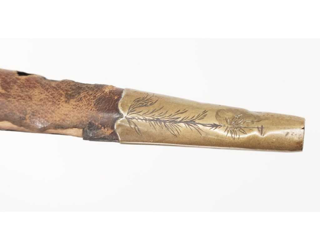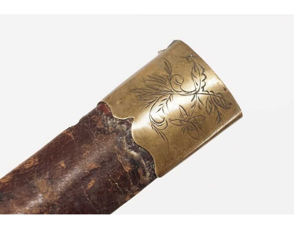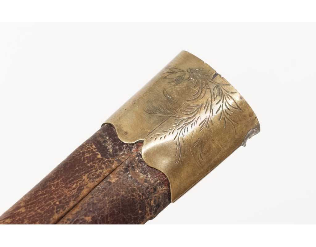 BE, mi XIXè usures et accidents au cuir, traces d'oxydation vers la pointe de la lame, légers manques sur le fusée.