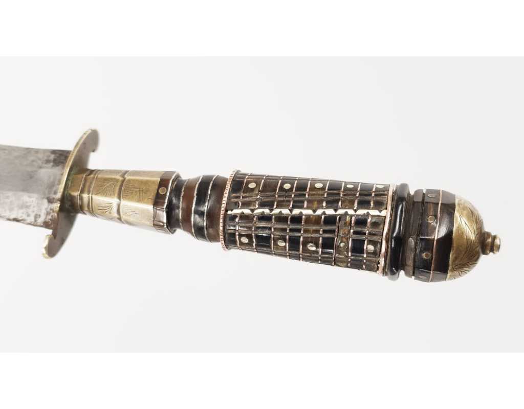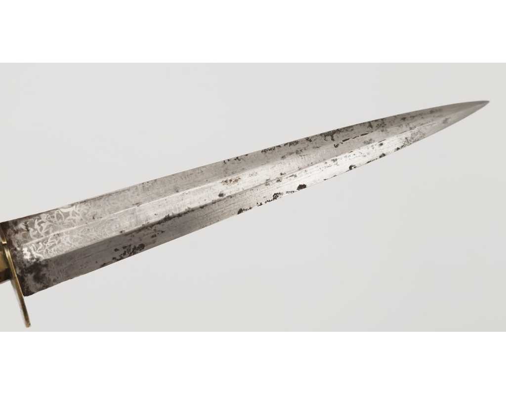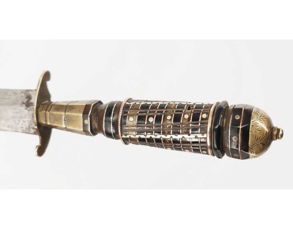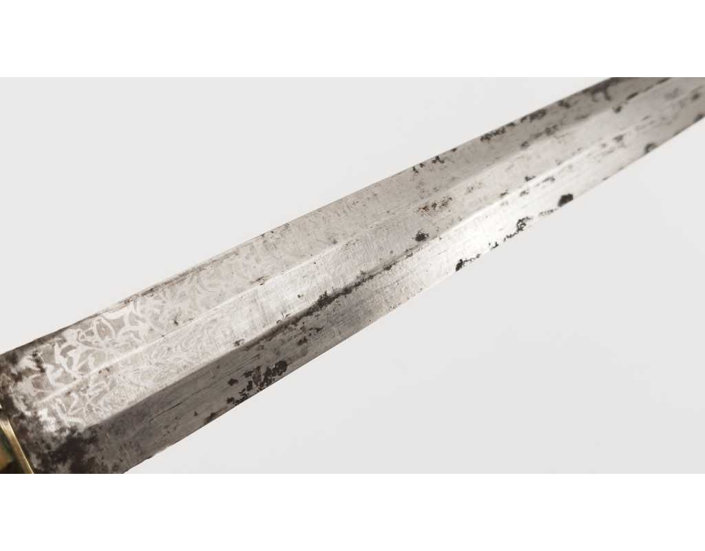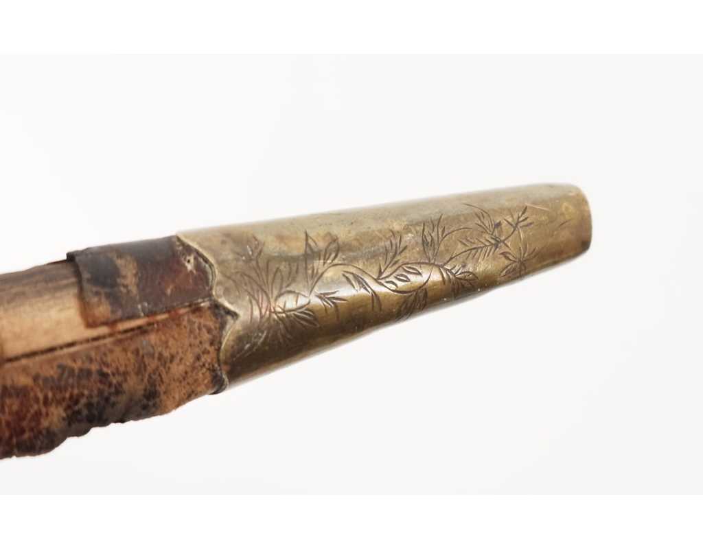 BE, mi XIXè usures et accidents au cuir, traces d'oxydation vers la pointe de la lame, légers manques sur le fusée.