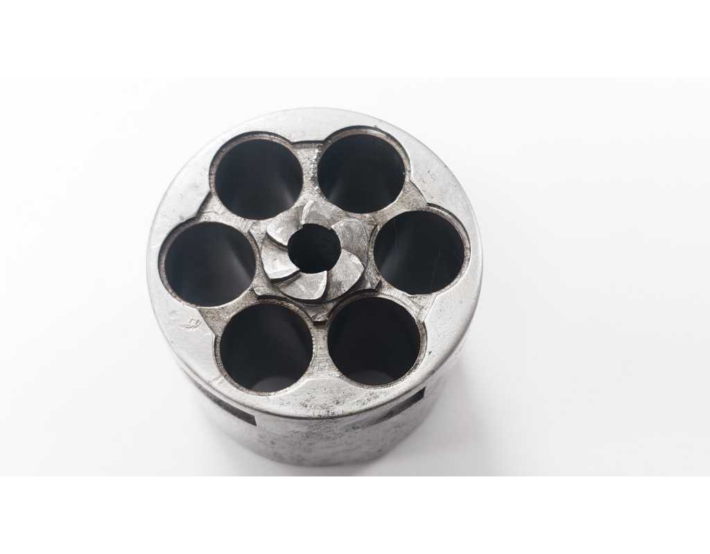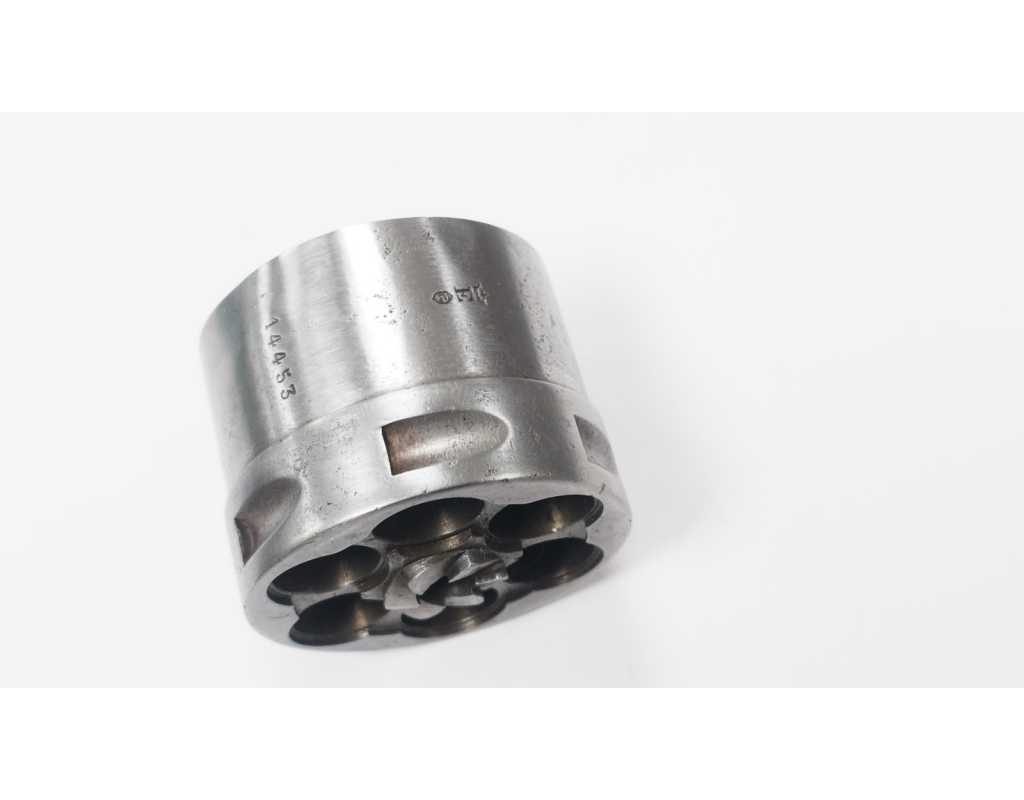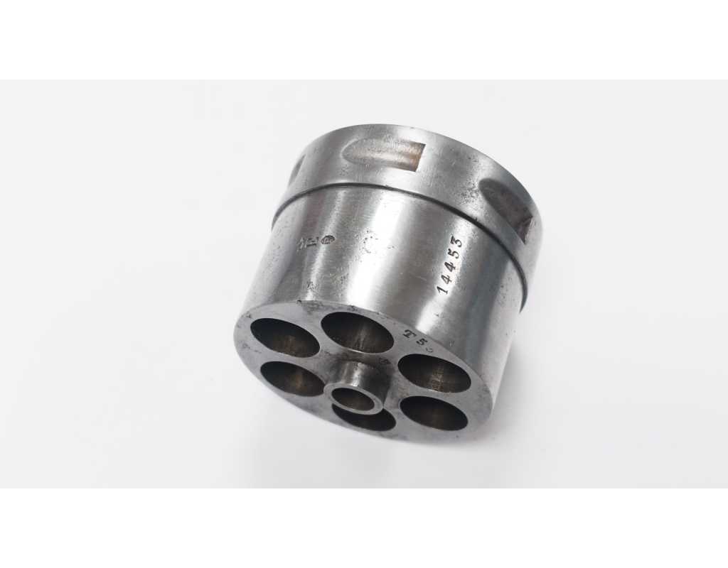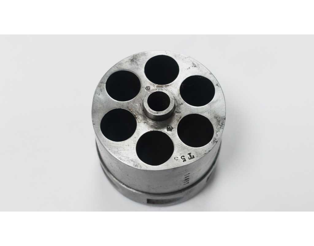 Barillet pour revolver MAS 1873 en bel état de conservation, chambrage intact en 11mm sans oxydation, rochet sans dommage, fines traces d'oxydation sur le contour.