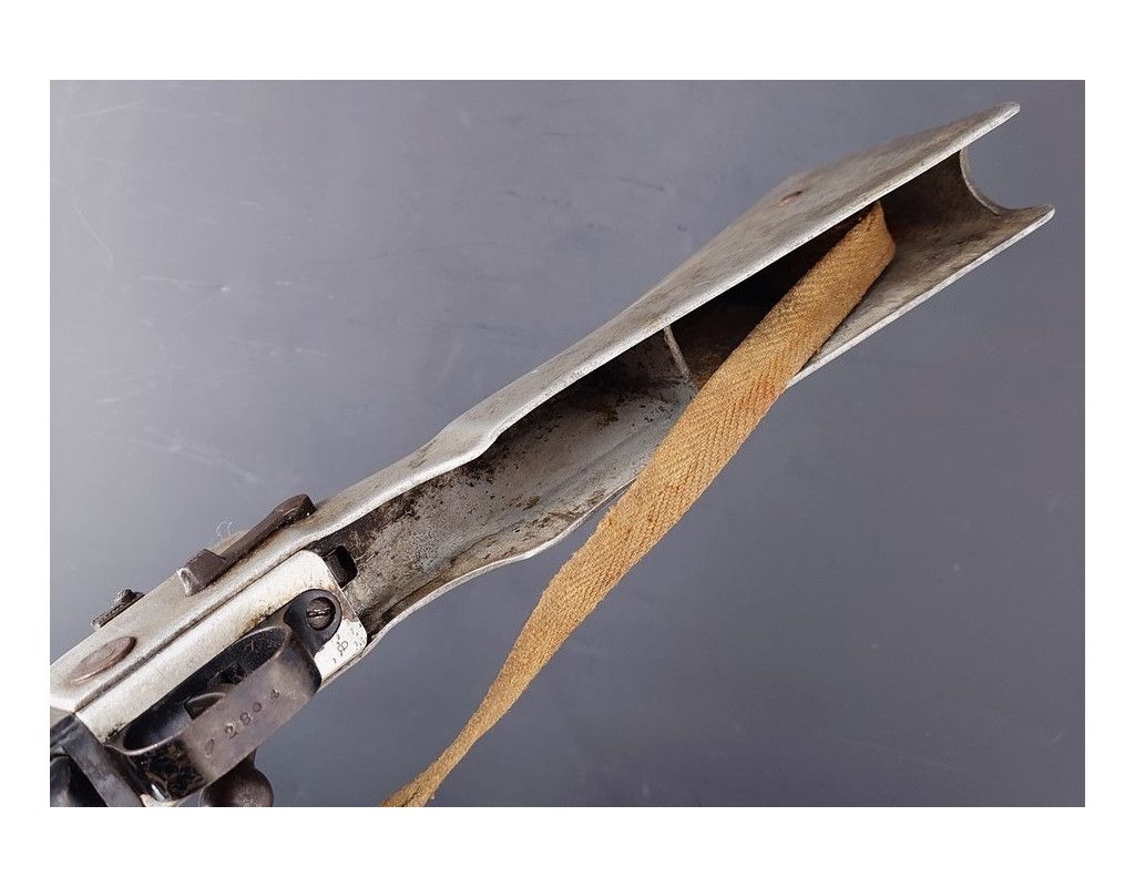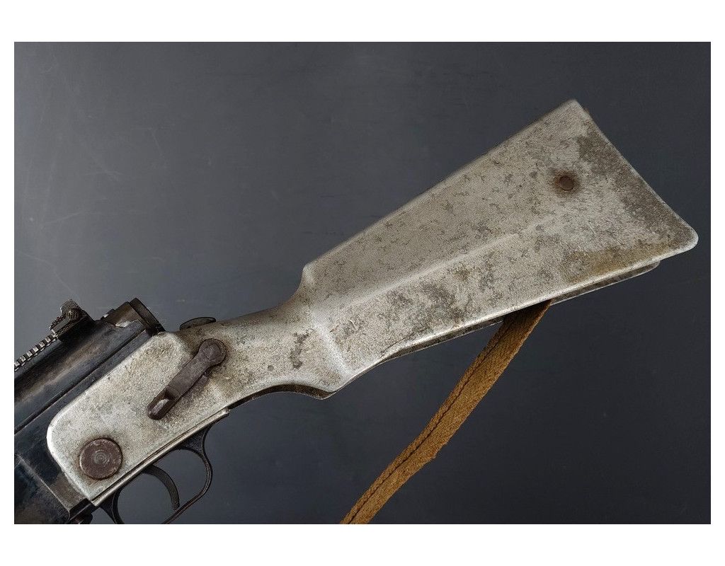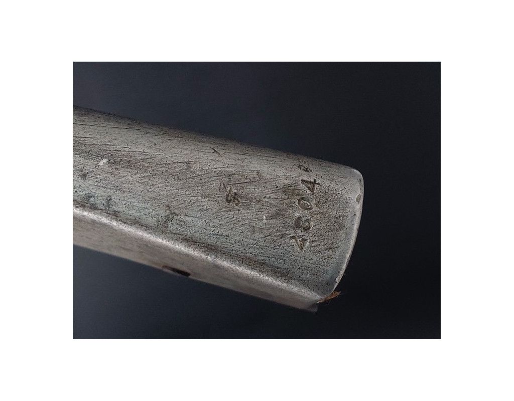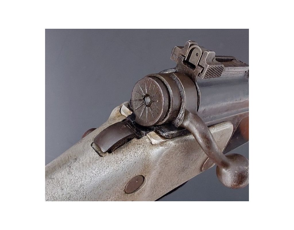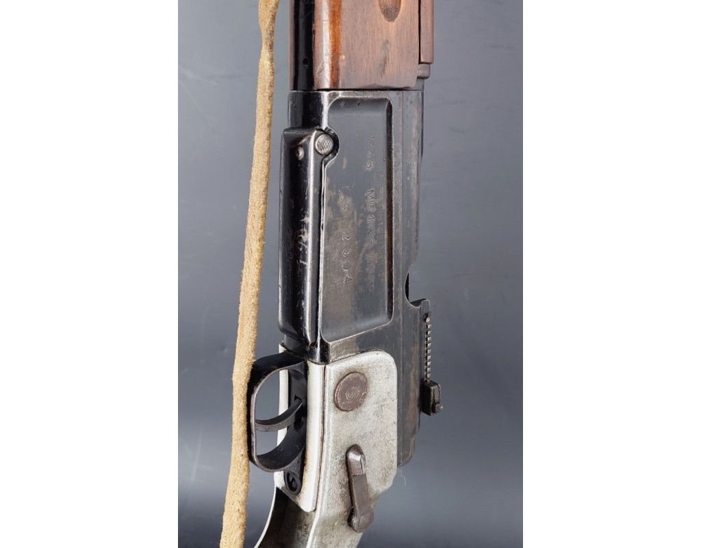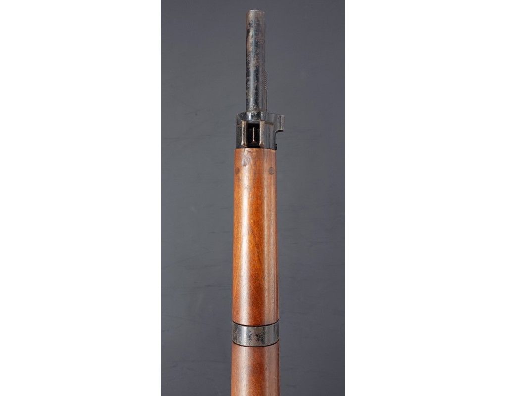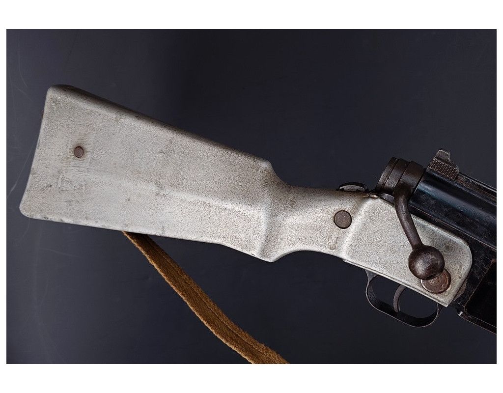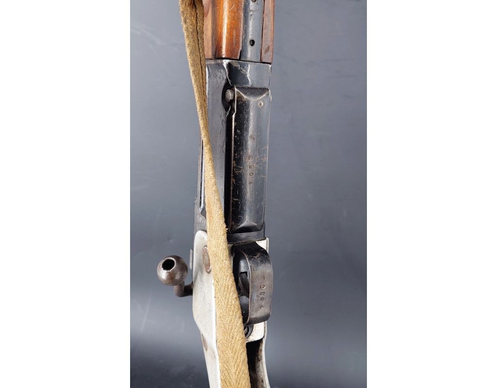 Rare Fusil MAS36 CR39 des troupes alpines françaises, mon matricule F2804 produit en 1939 dans sa finition d'origine peint noir cuit au four, crosse fixe (non visible) pour conserver le classement en catégorie C1, bretelle en tissu montée d'origine ressort de l'enrouleur d'origine ressort défaillant, rayures brillantes sans usure particulière ni tache. Toutes pièces au même numéro y compris la baïonnette, dans son jus jamais en collection, provenance maquis de Haute Savoie 1944.