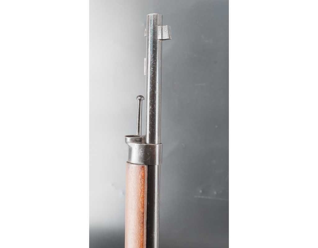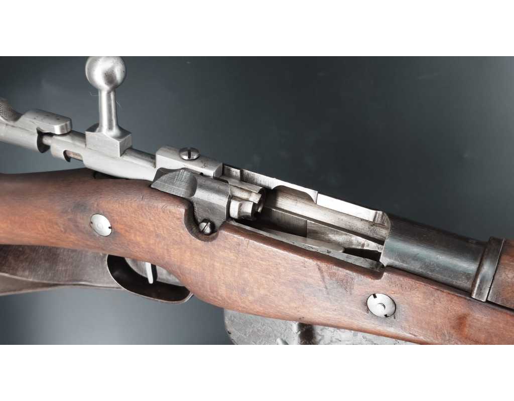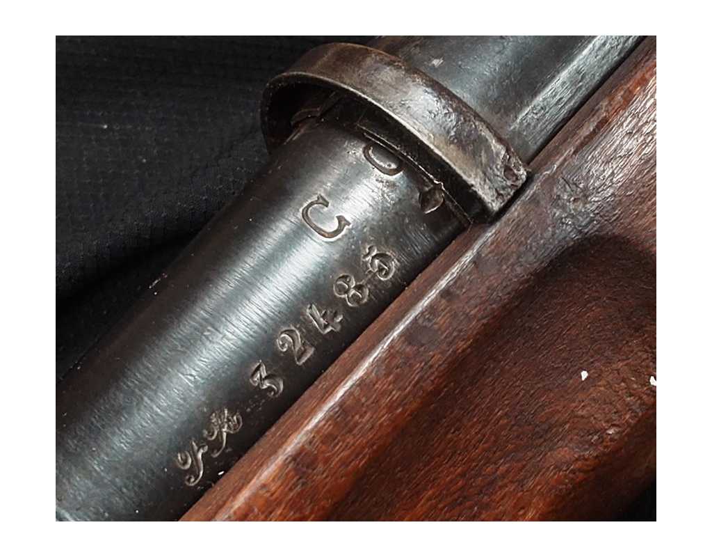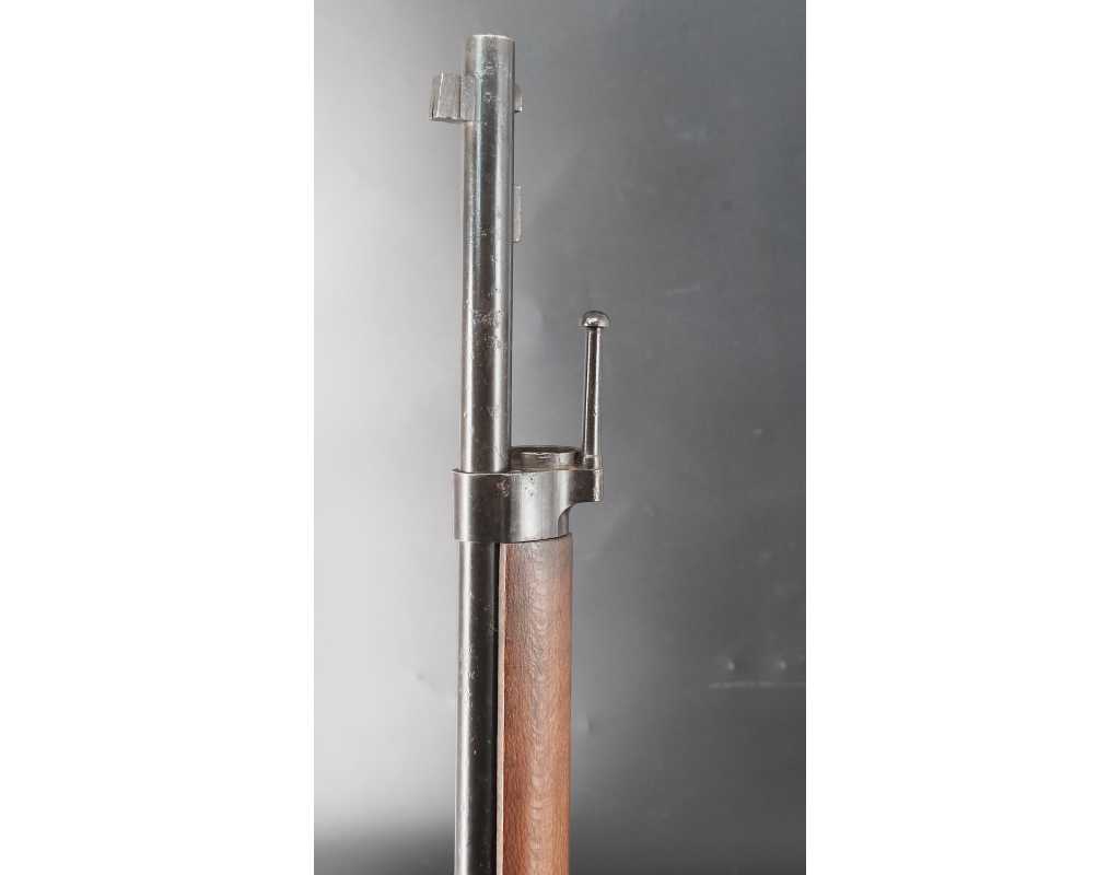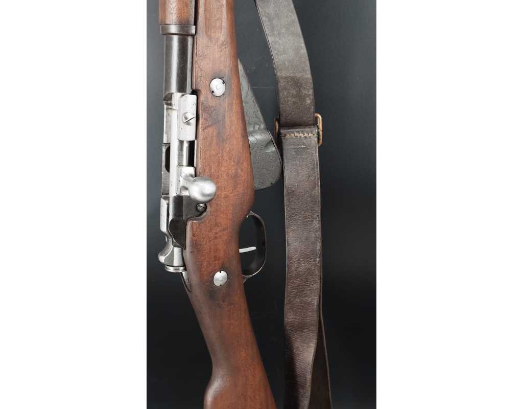 Bel exemplaire d'un fusil Berthier réglementaire modèle 1907/15 M16 construit neuf par Continsouza fin d'année 1917 avec un canon frappé PA 1917, répétition manuelle 5 coups calibre 8x51R modifié pour la balle 32N. Bronzage d'origine légèrement patiné avec fines traces d'oxydation localisées, tous poinçons et marquages conforme et d'origine non atténués. Mécanisme complet et fonctionnel avec un verrouillage parfait, toutes pièces d'origine au même numéro FK32485. Monture en noyer avec macaron de crosse bien net réceptionné en février 1918 sans usure ni enture. Canon bien marqué long de 778mm, rayures bien nettes, peu usagées d'aspect brillantes miroir sans tache interne.