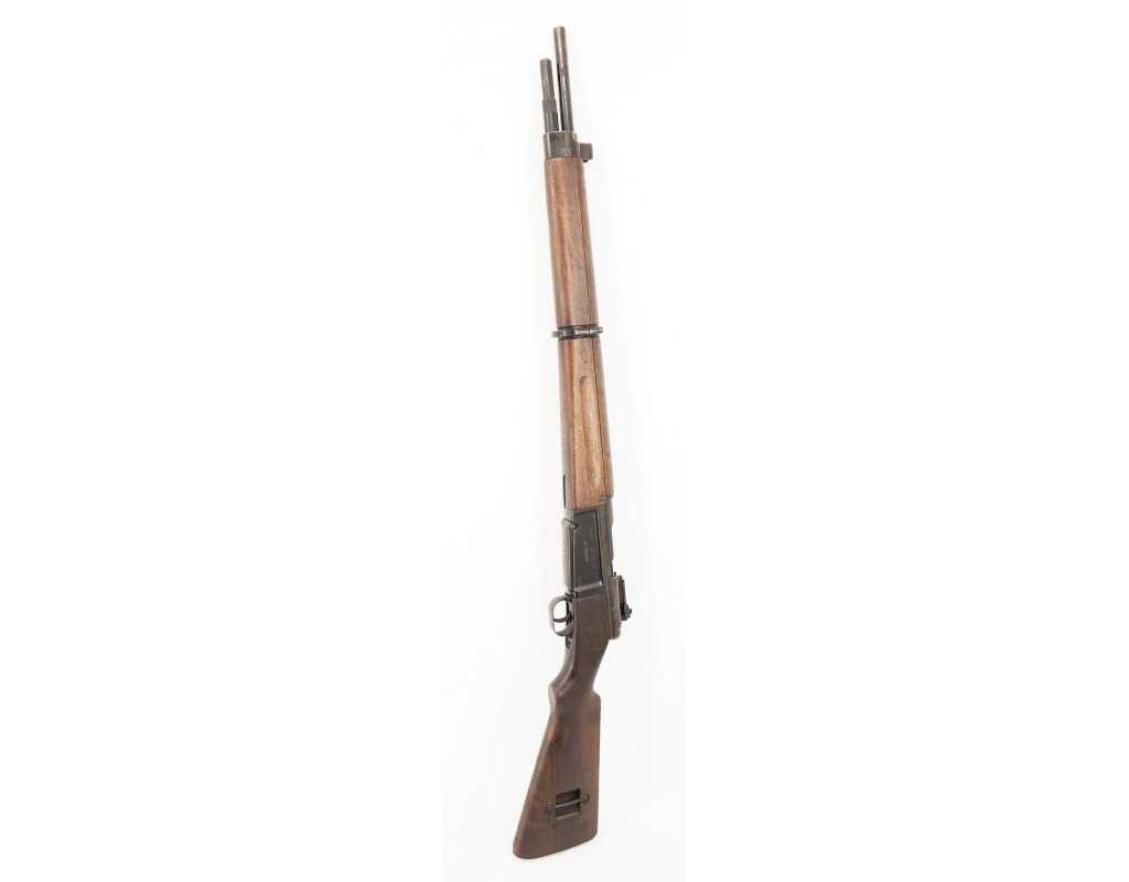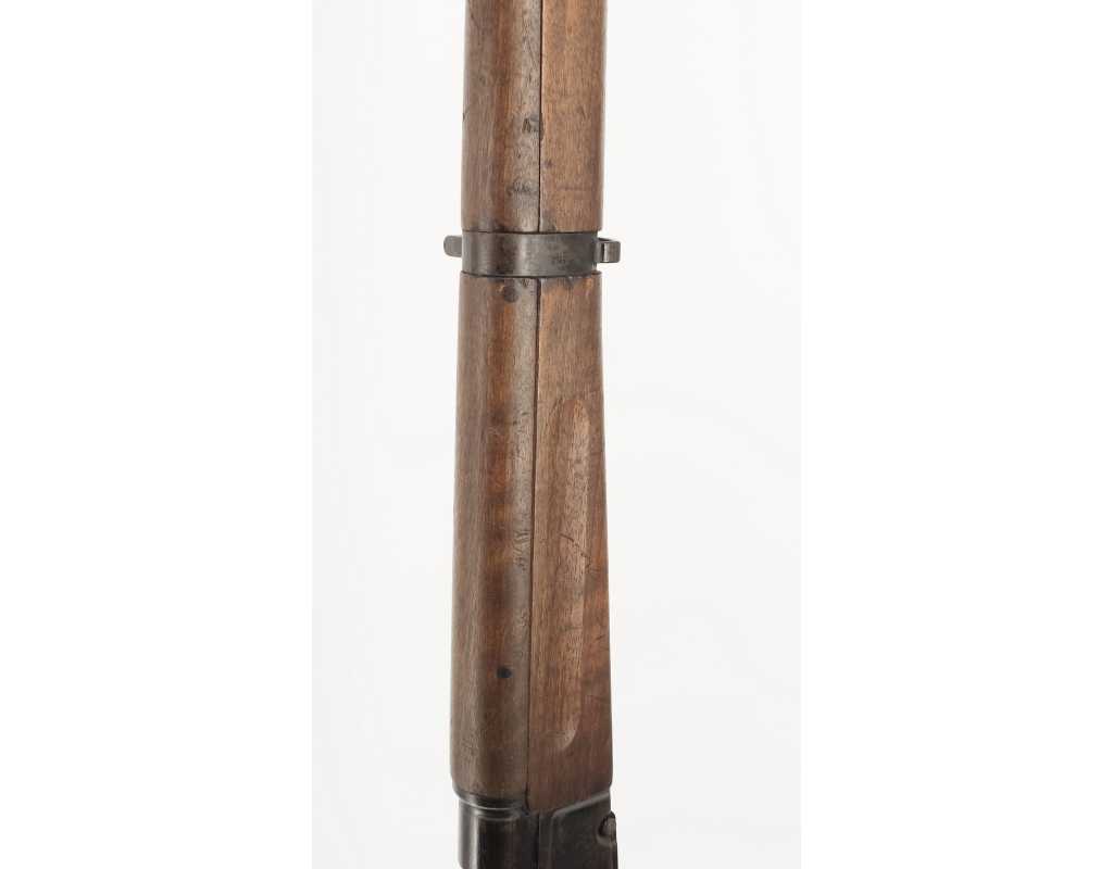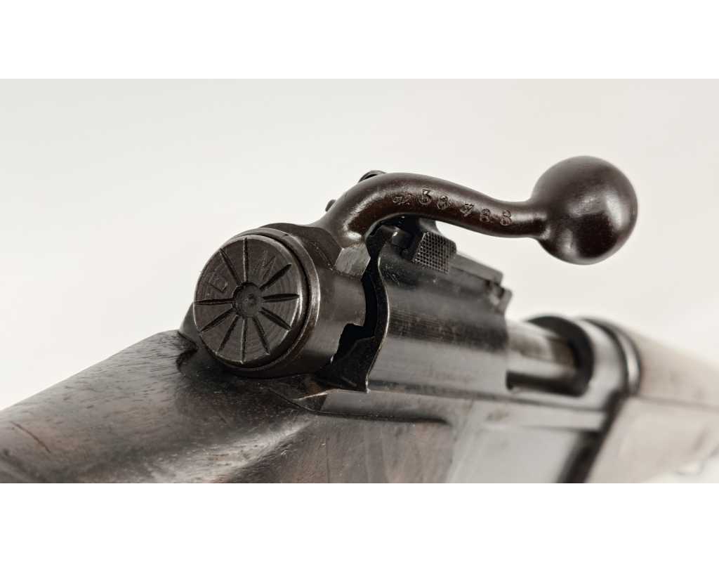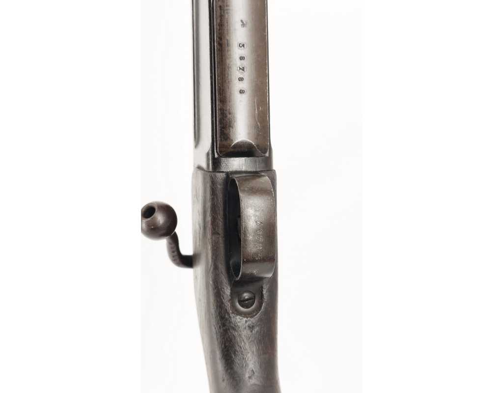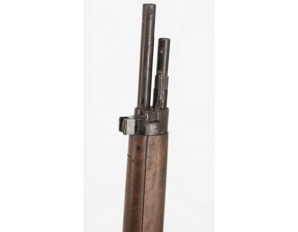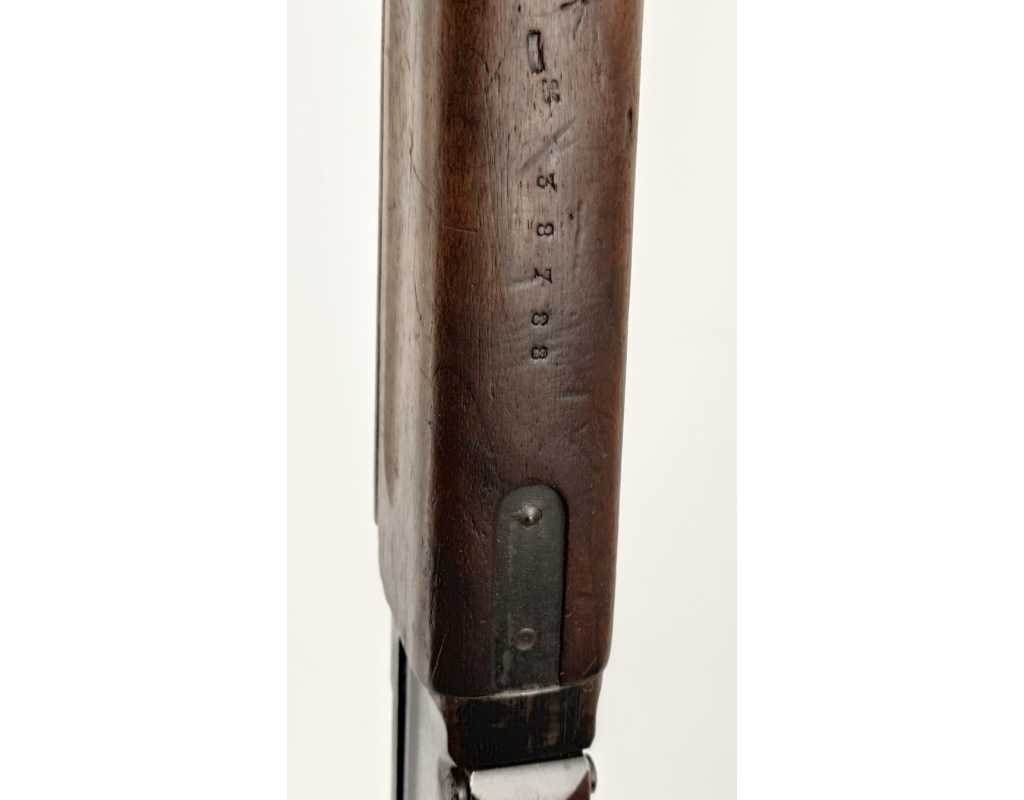 Fusil infanterie MAS modèle 36 1er type St Etienne de 1940 numéroté H38788, calibre d'origine 7,5X54 MAS. Peinture noir cuite au four d'origine (usures et taches), toutes pièces d'origine au même numéro excepté la baïonnette. Fins tache d'oxydation localisées. Canon d'origine à rayures d'aspect brillante sans usure particulière ni tache.