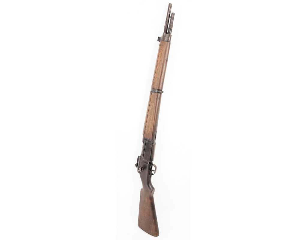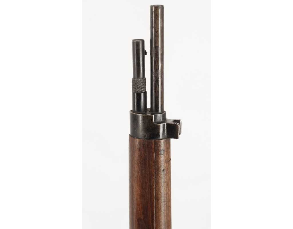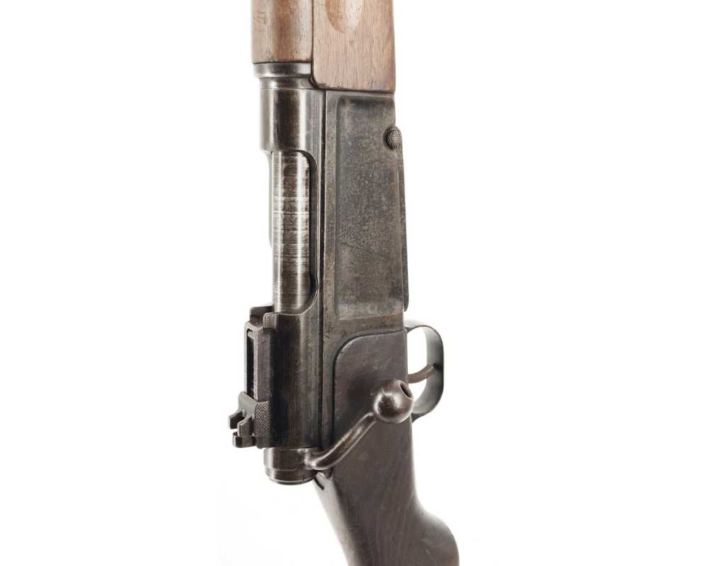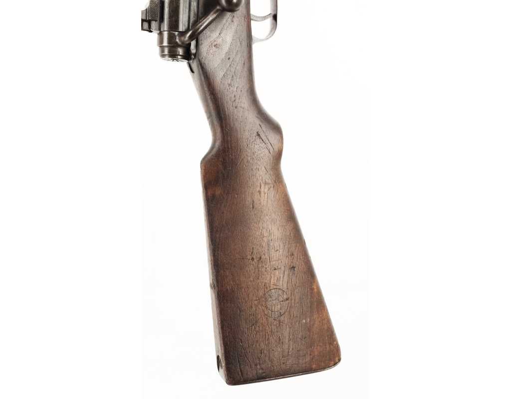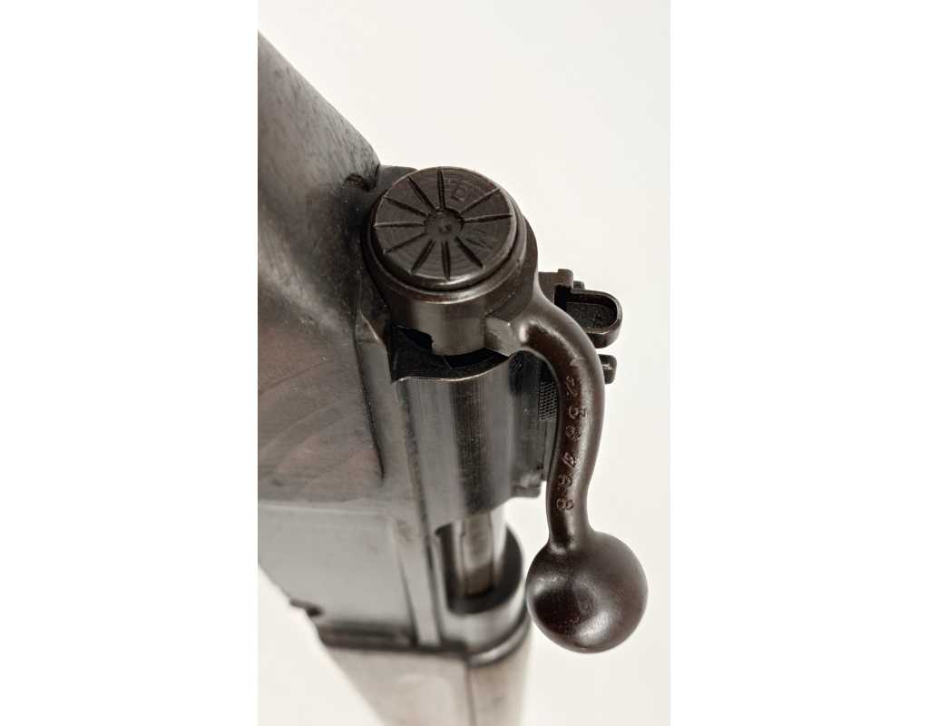 Fusil infanterie MAS modèle 36 1er type St Etienne de 1940 numéroté H38788, calibre d'origine 7,5X54 MAS. Peinture noir cuite au four d'origine (usures et taches), toutes pièces d'origine au même numéro excepté la baïonnette. Fins tache d'oxydation localisées. Canon d'origine à rayures d'aspect brillante sans usure particulière ni tache.