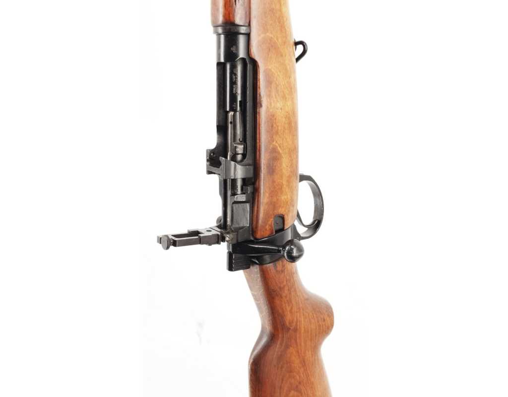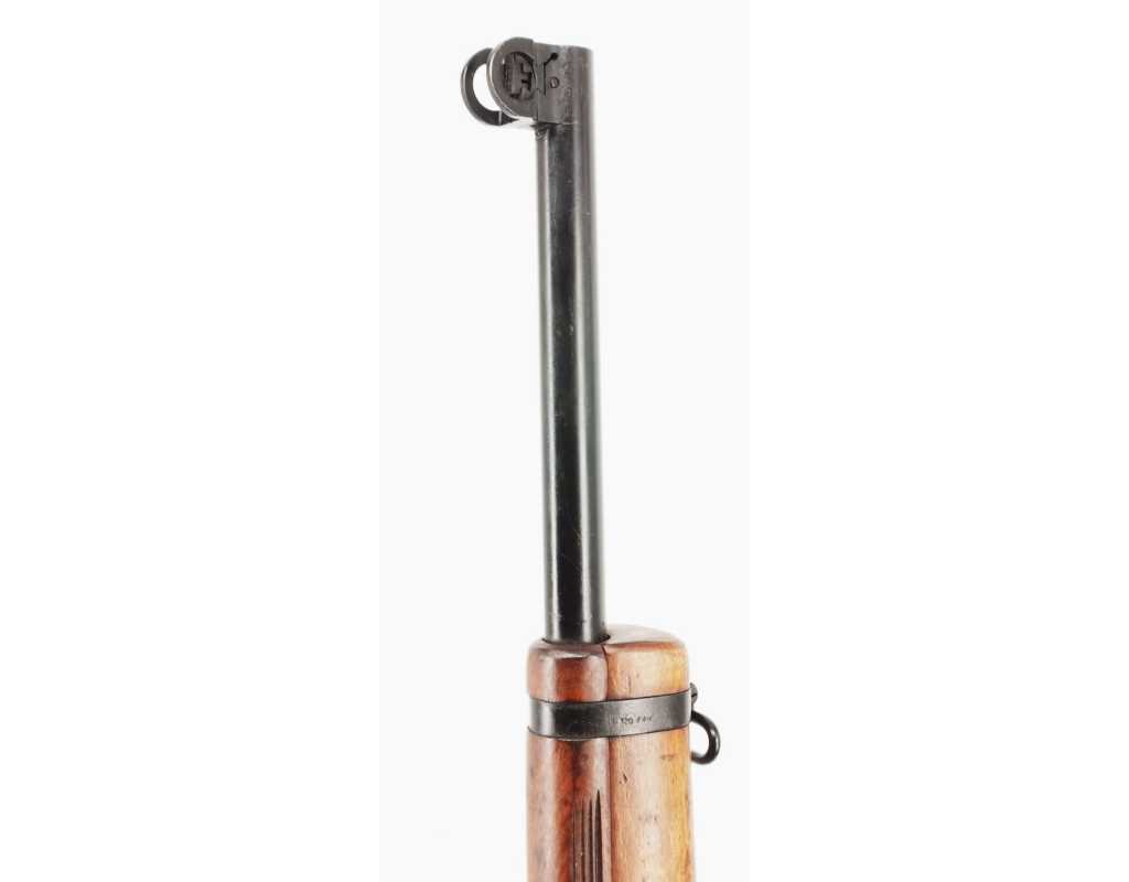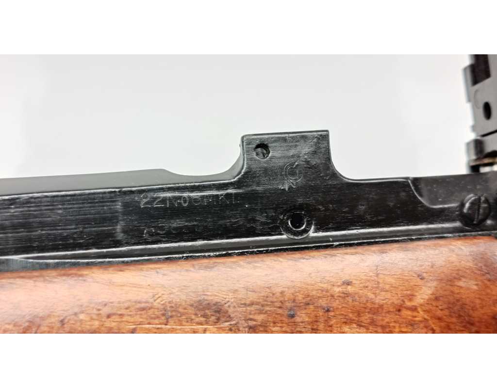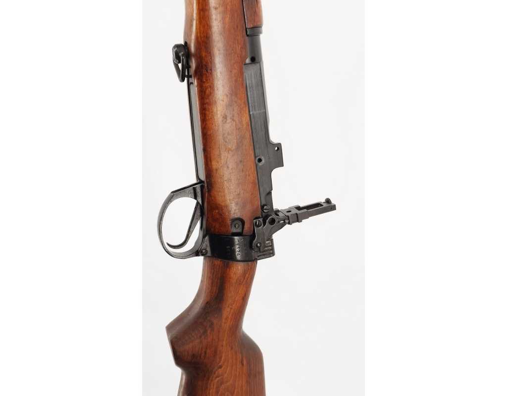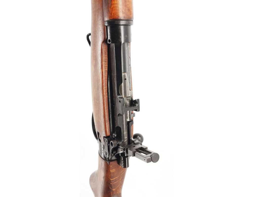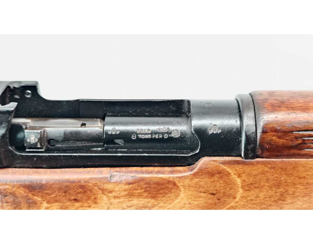 Fusil ENFIELD N°8 MKI CR324 année 50's, un coup en calibre 22LR. Mécanisme complet avec toutes pièces d'origine, marquages bien lisibles. Finition d'origine sans usure particulière. Canon avec rayures d'aspect miroir sans tache. Crosse et fut en noyer clair. Arme en parfait état de conservation qui satisfera un tireur sportif TAR